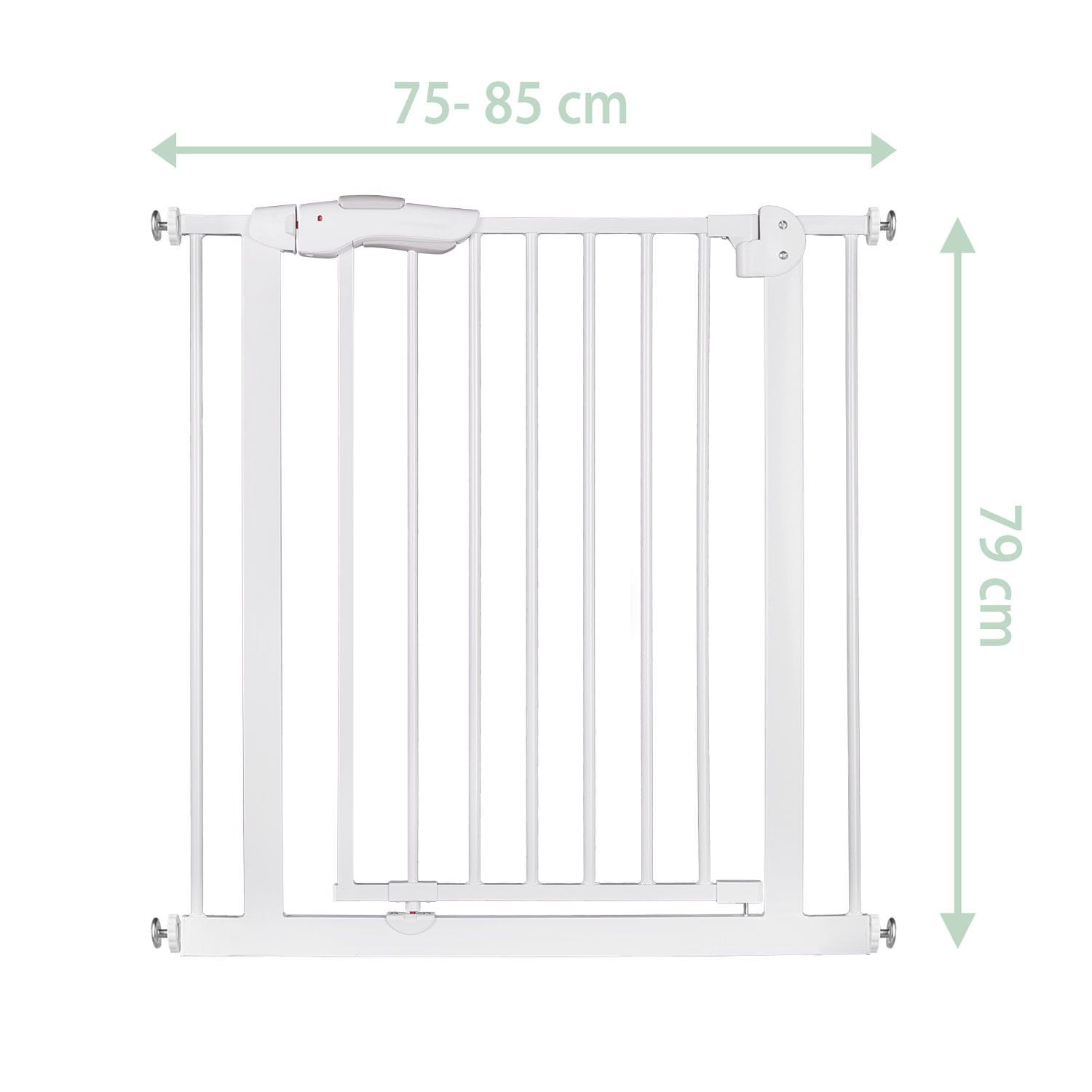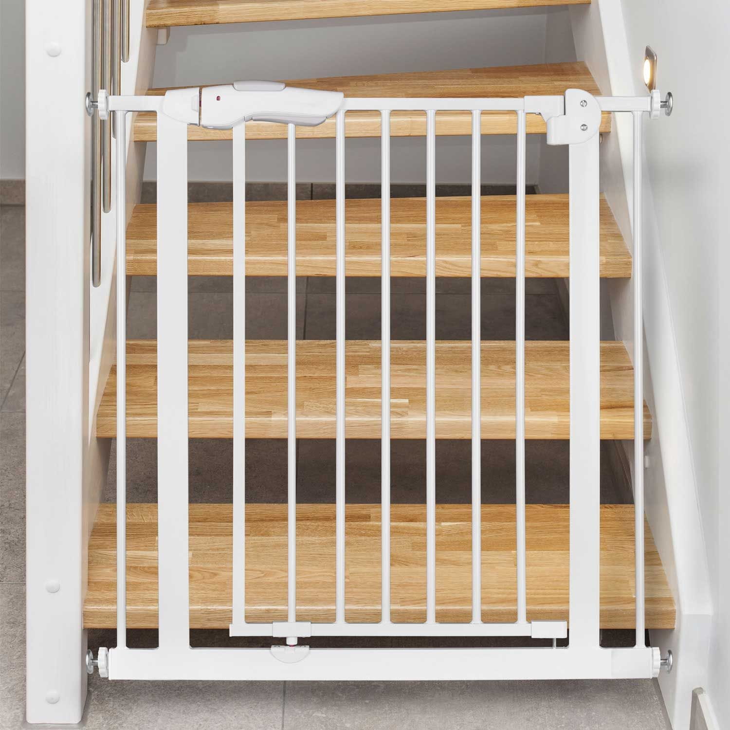 Barierka, bramka zabezpieczająca, Nukido, biały. Barierka ochronna jest mocowana rozporowo bez konieczności wiercenia otworów, dzięki czemu nie zniszczysz ścian, ani futryny. Jej uniwersalny biały kolor sprawia, że idealnie dostosowuje się do każdego wystroju wnętrza. Regulowana szerokość pozwala na zamontowanie jej w drzwiach i przejściach od 75 do 85 cm.