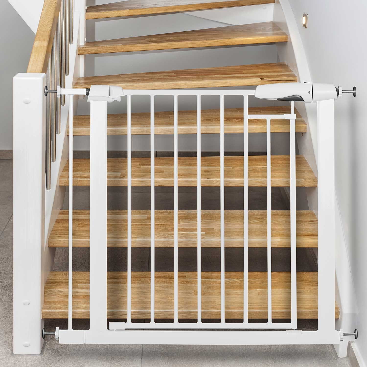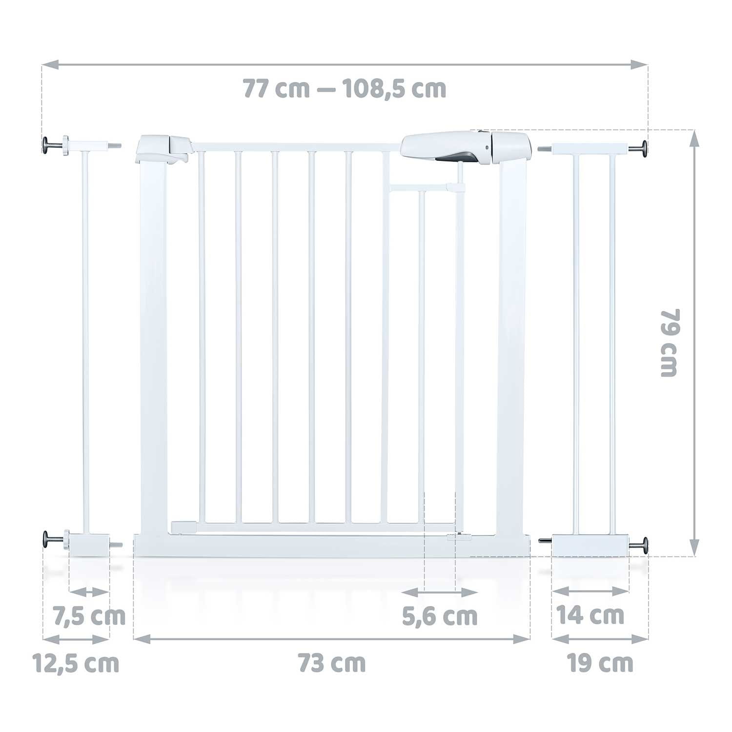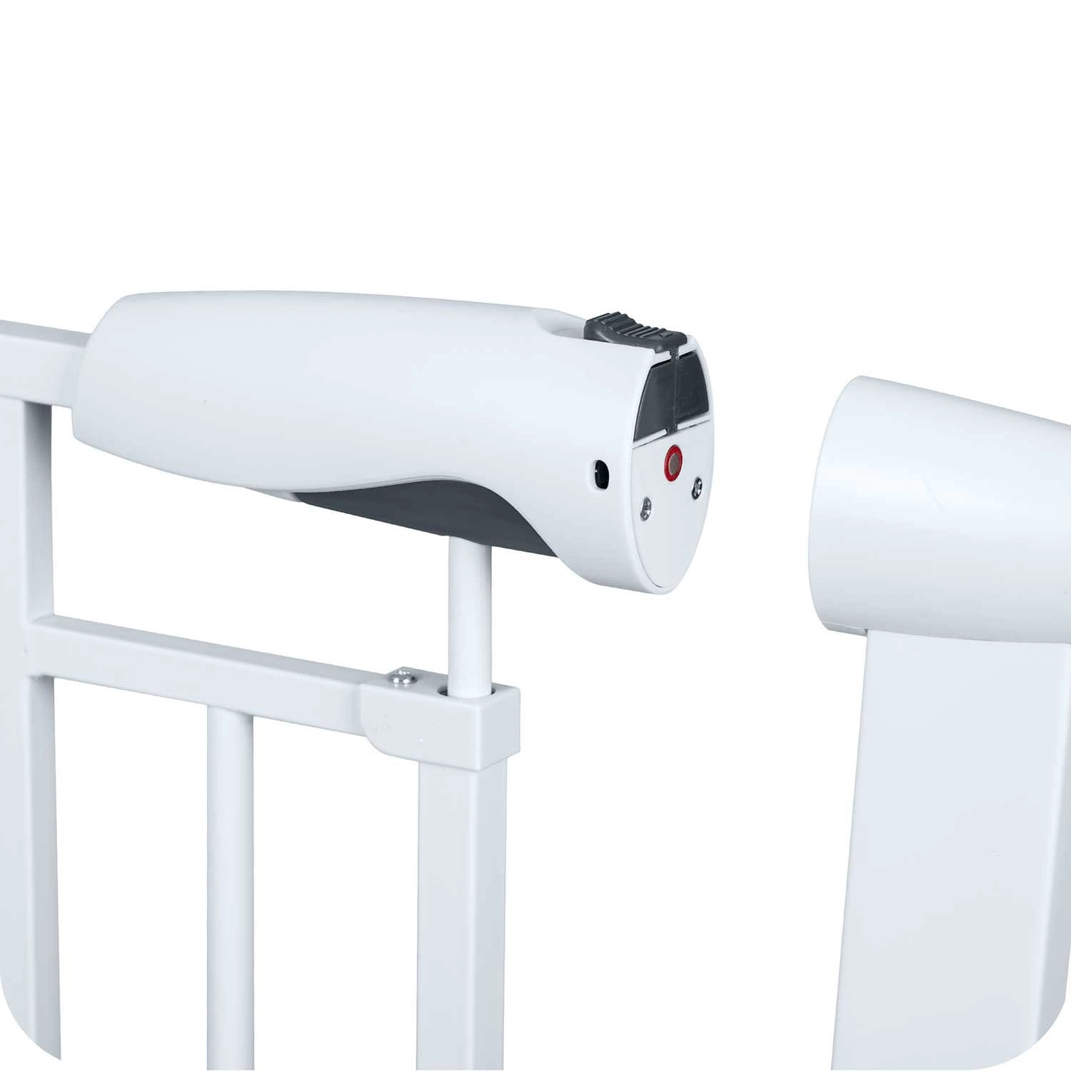 Barierka, bramka zabezpieczająca, Nukido, biały. Bramka NUKIDO to idealna propozycja dla rodziców ceniących przede wszystkim bezpieczeństwo swojego dziecka. Produkt charakteryzuje się stylowym designem i ergonomiczną konstrukcją, która nie pozwoli dziecku wejść do niezabezpieczonych pomieszczeń. Na uwagę zasługuje również uniwersalny rozmiar, który umożliwia dopasowanie go do przejść o wymiarach od 77 cm do 108,5 cm.