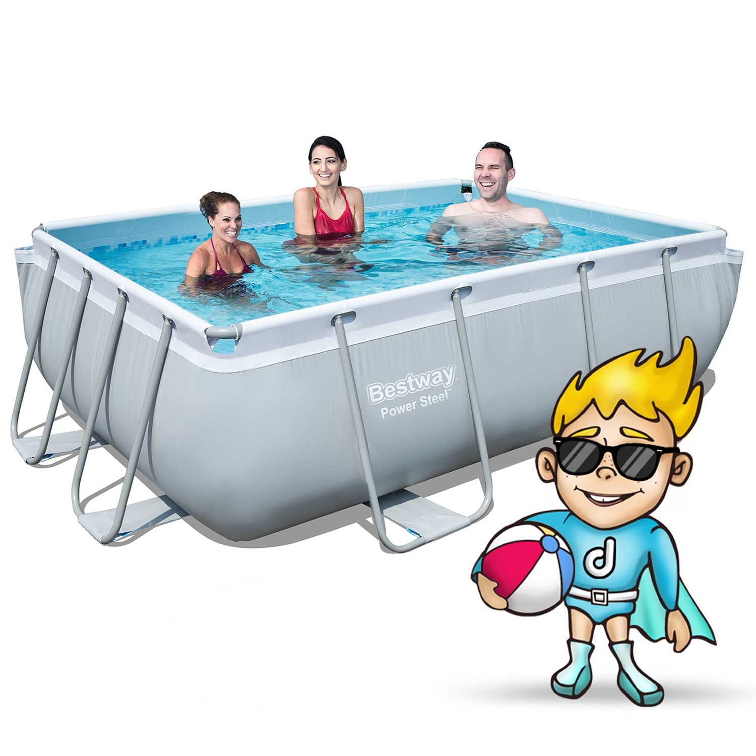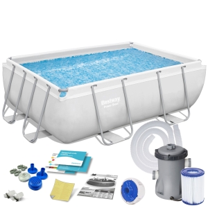 Basen ogrodowy stelażowy, 10w1, Bestway, 282x196x84 cm. Gotowy zestaw z kompletnym wyposażeniem – nie musisz sam szukać wszystkich elementów. Solidny basen, który błyskawicznie będzie gotowy do użytku.
