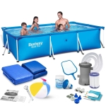 Basen ogrodowy stelażowy, 15w1, Bestway, 300x201x66 cm. Idealny do ochłody w upalne dni letnie dni! Solidny basen, który błyskawicznie będzie gotowy do użytku. Basen został specjalnie zaprojektowany, by stworzyć bezpieczne warunki do zabawy dla dzieci, które kochają wodę.