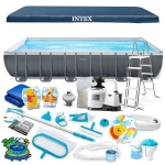 Basen ogrodowy stelażowy, 21w1, Intex, 732x366x132 cm. Jeśli potrzebujesz dużego, niezawodnego basenu - to idealny wybór dla Ciebie! Gotowy zestaw z wyposażeniem – nie musisz sam szukać wszystkich elementów.