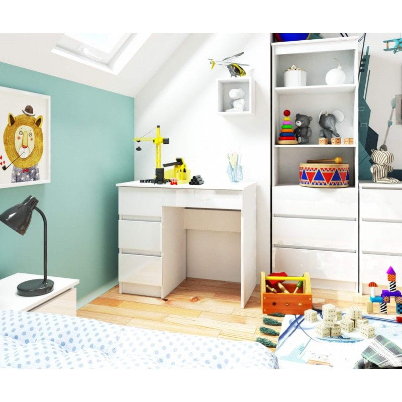 Biurko komputerowe, szkolne, lewe, NIKO, 90x50x77 cm, biel, połysk