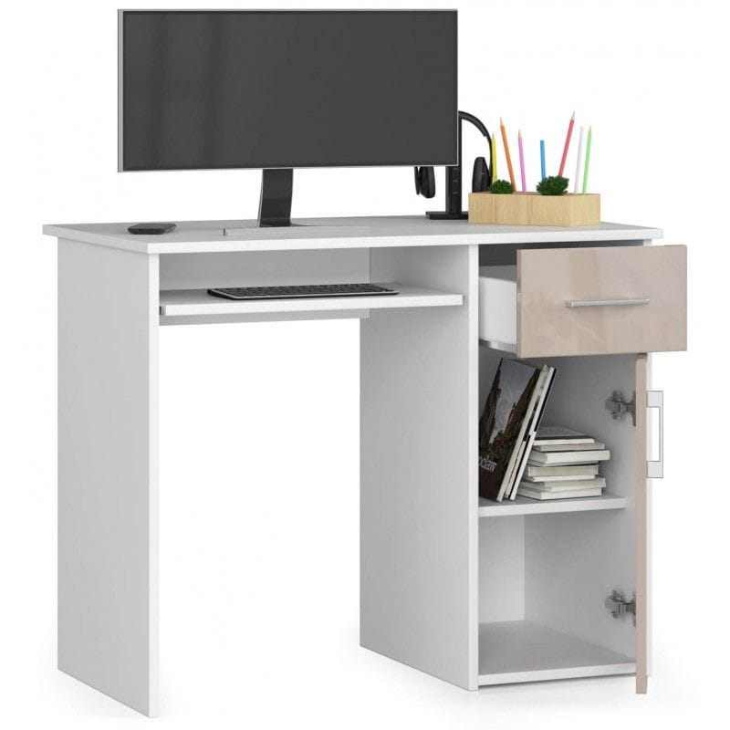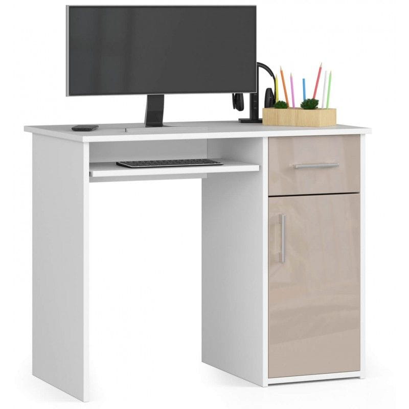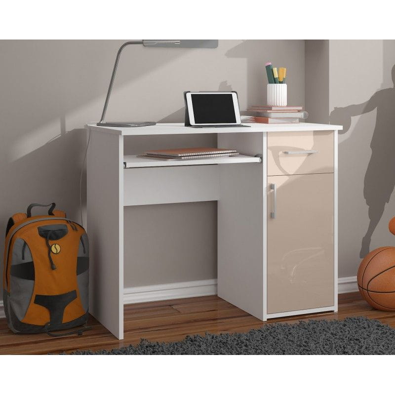 Biurko komputerowe, szkolne, SOLO, 90x50x74 cm, biel, cappuccino, połysk