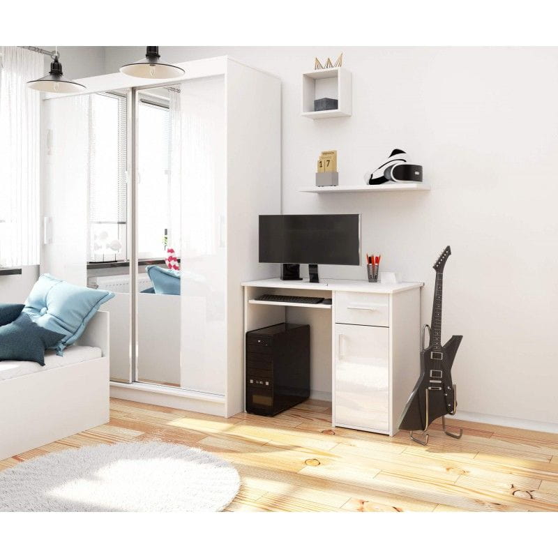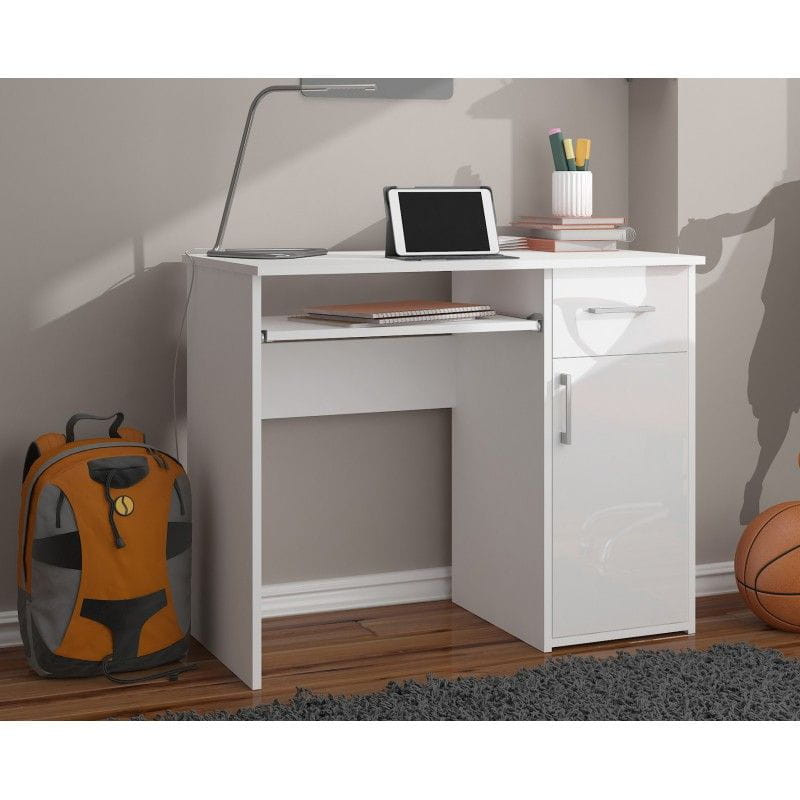 Biurko komputerowe, szkolne, SOLO, 90x50x74 cm, biel, połysk