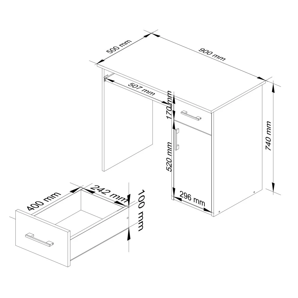 Biurko komputerowe, szkolne, SOLO, 90x50x74 cm. Piękne biurko wolnostojące to propozycja dedykowana osobom wyznającym zasadę, że mniej znaczy więcej. Prostota i elegancja, którymi charakteryzuje się przygotowany przez nas produkt, pozytywnie zaskakują w połączeniu z wysoką jakością oraz niebywałą funkcjonalnością. Na mebel składa się blat, wysuwana półka na klawiaturę, szafka oraz szuflada.