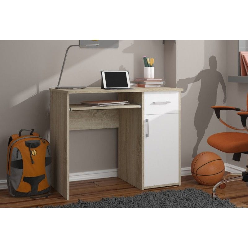 Biurko komputerowe, szkolne, SOLO, 90x50x74 cm, dąb sonoma, biel, mat