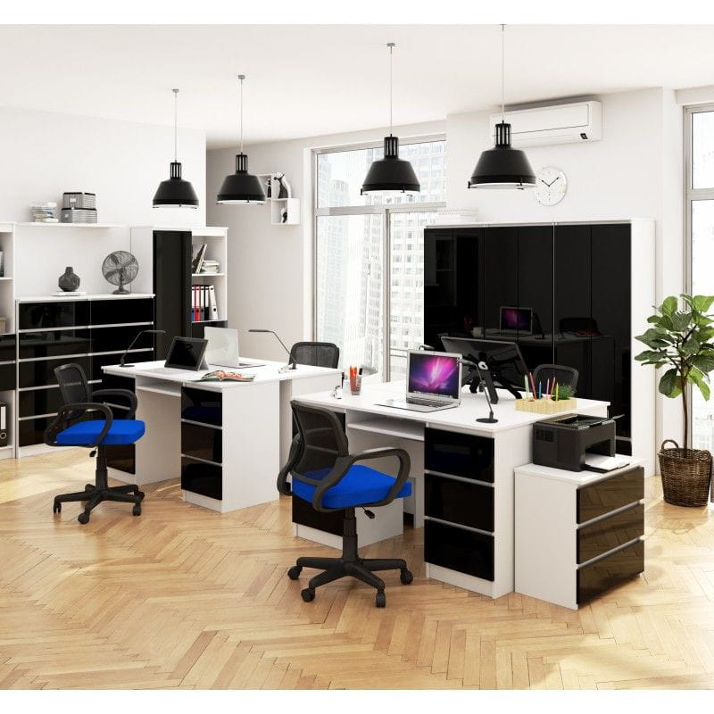 Biurko komputerowe, szuflady, CORE, 135x50x77 cm, biel, czarny, połysk