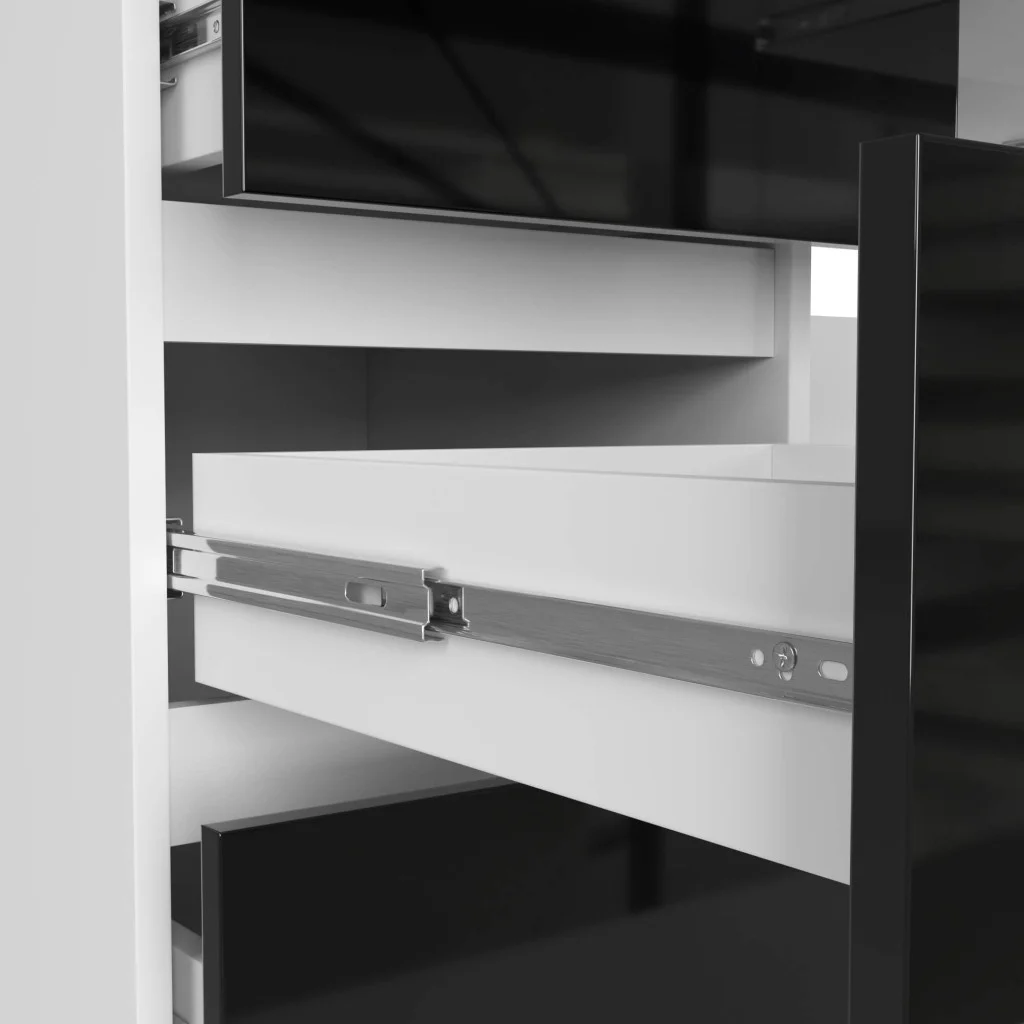 - Szuflady i półka pod klawiaturę poruszają się na metalowych prowadnicach rolkowych