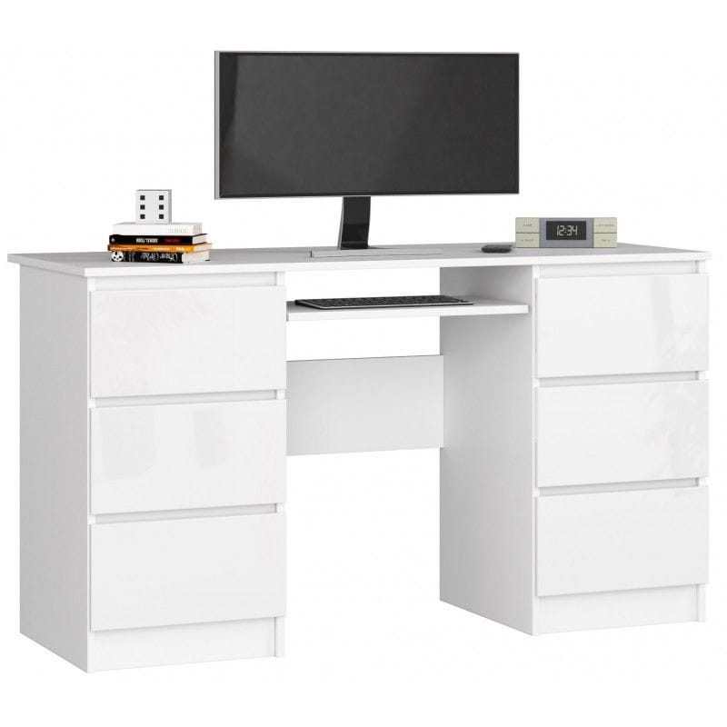 Biurko komputerowe, szuflady, CORE, 135x50x77 cm, biel, połysk