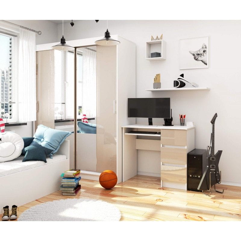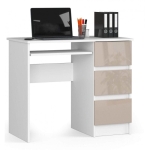 Biurko komputerowe, szuflady, prawe, ASTOR, 90x50x77 cm, biel, cappuccino, połysk