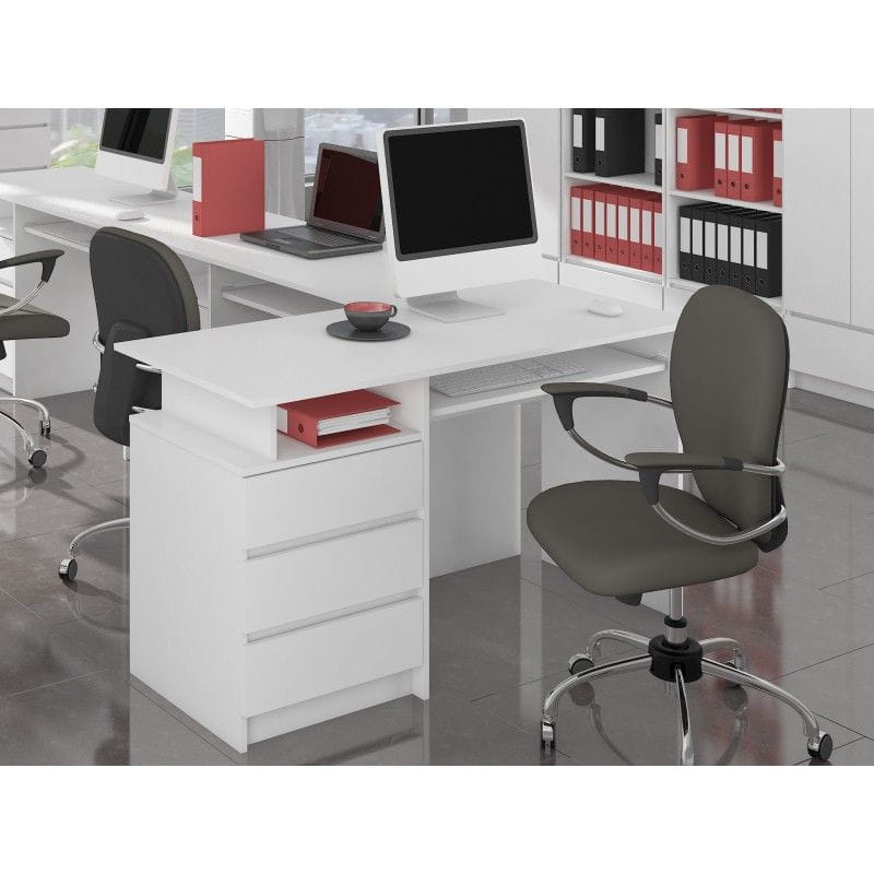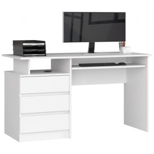 Biurko komputerowe z szufladami, NORI, 135x60x77 cm, biel, mat