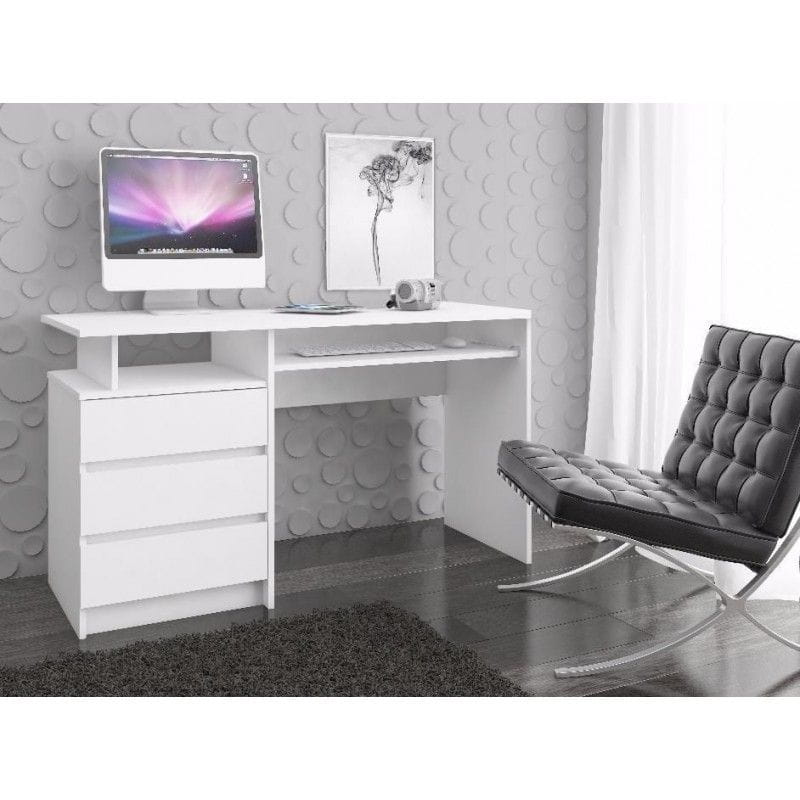 Biurko komputerowe z szufladami, NORI, 135x60x77 cm, biel, mat. Biurko wolnostojące to propozycja skierowana do osób ceniących sobie nieśmiertelną klasykę. Stonowany kolor jest łatwy w utrzymaniu czystości, a dodatkowo świetnie łączy się z dodatkami we wszystkich kolorach. Nadaje się do wnętrza zaaranżowanego w sposób nowoczesny, jak i tradycyjnie urządzonego pomieszczenia. Tył biurka wolnostojącego został wykończony w płycie laminowanej, co zapewnia możliwość postawienia mebla w dowolnym miejscu, bez konieczności usytuowania go przy ścianie.