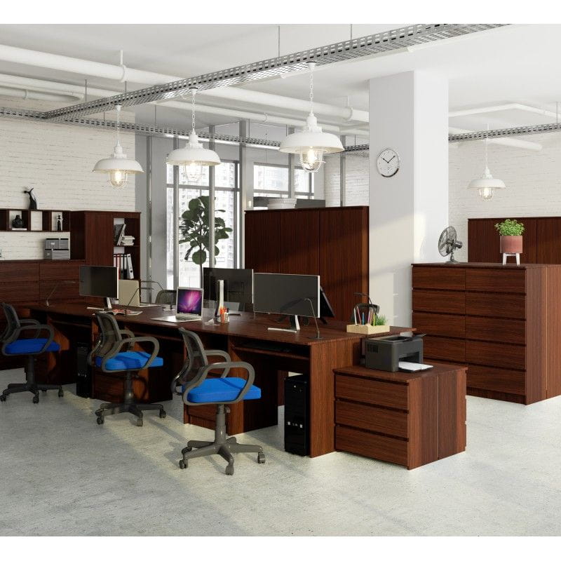 Biurko komputerowe z szufladami, NORI, 135x60x77 cm. Biurko wolnostojące to propozycja skierowana do osób ceniących sobie nieśmiertelną klasykę. Stonowany kolor jest łatwy w utrzymaniu czystości, a dodatkowo świetnie łączy się z dodatkami we wszystkich kolorach. Nadaje się do wnętrza zaaranżowanego w sposób nowoczesny, jak i tradycyjnie urządzonego pomieszczenia. Tył biurka wolnostojącego został wykończony w płycie laminowanej, co zapewnia możliwość postawienia mebla w dowolnym miejscu, bez konieczności usytuowania go przy ścianie.