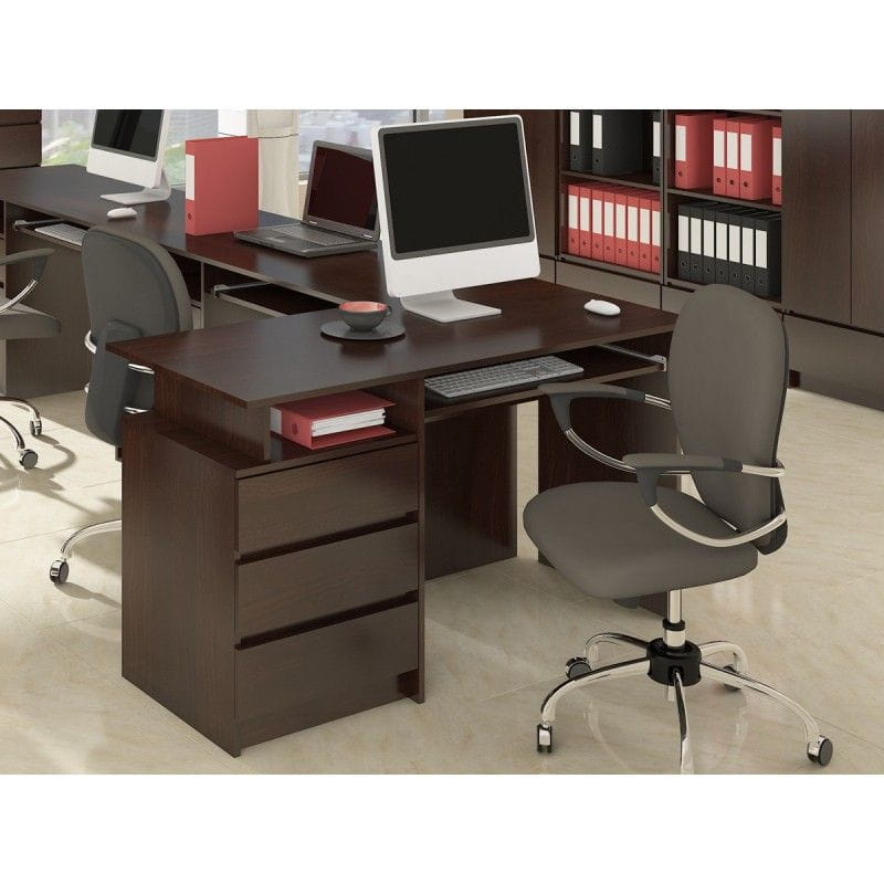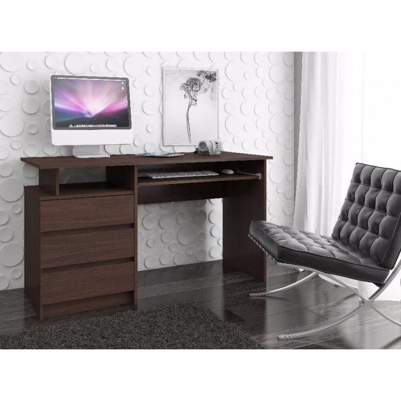 Biurko komputerowe z szufladami, NORI, 135x60x77 cm, wenge, mat