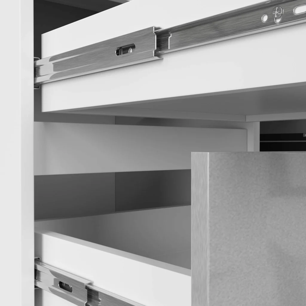 - Szuflada porusza się na metalowych prowadnicach rolkowych