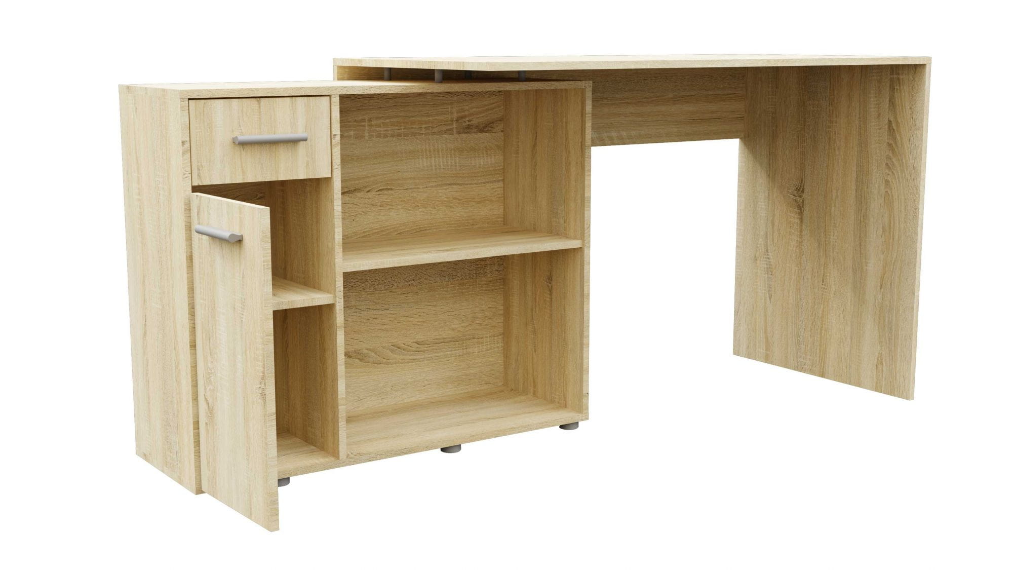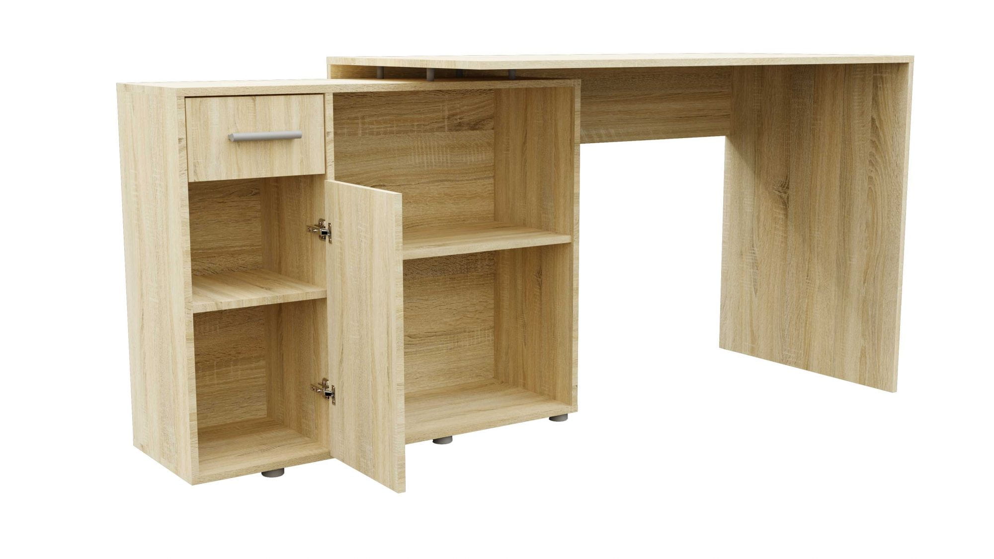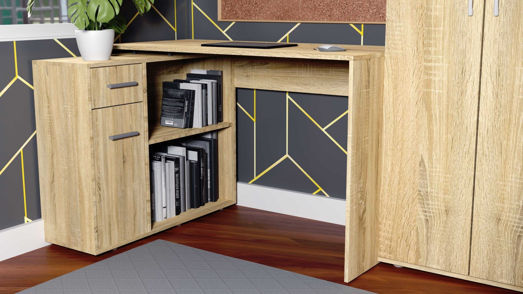 Biurko narożne, modułowe, regał, elena, 120x93x76 cm, dąb sonoma