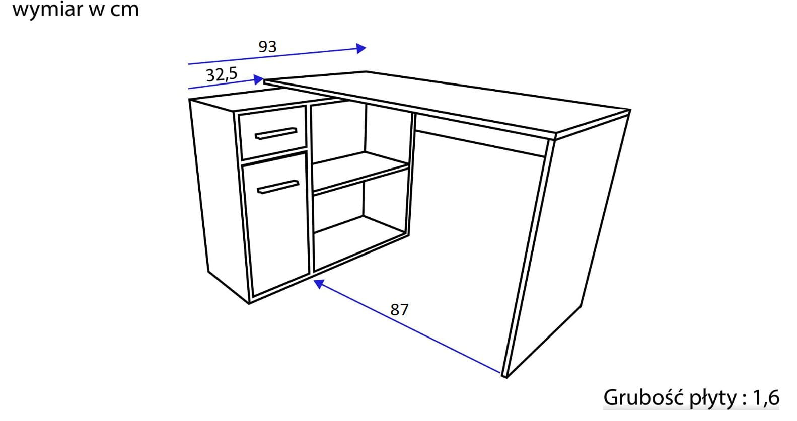 - Zestaw narożny posiada 2 komory, drzwiczki oraz 1 szufladę w których możesz wygodnie poukładać posiadane dokumenty