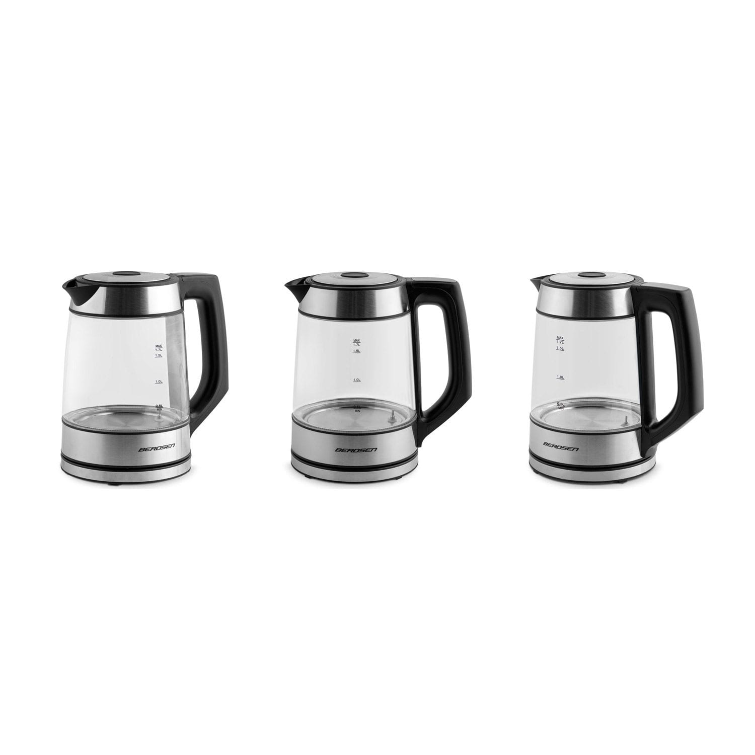 Czajnik elektryczny szklany, 1,7L, Berdsen, czarny, srebrny