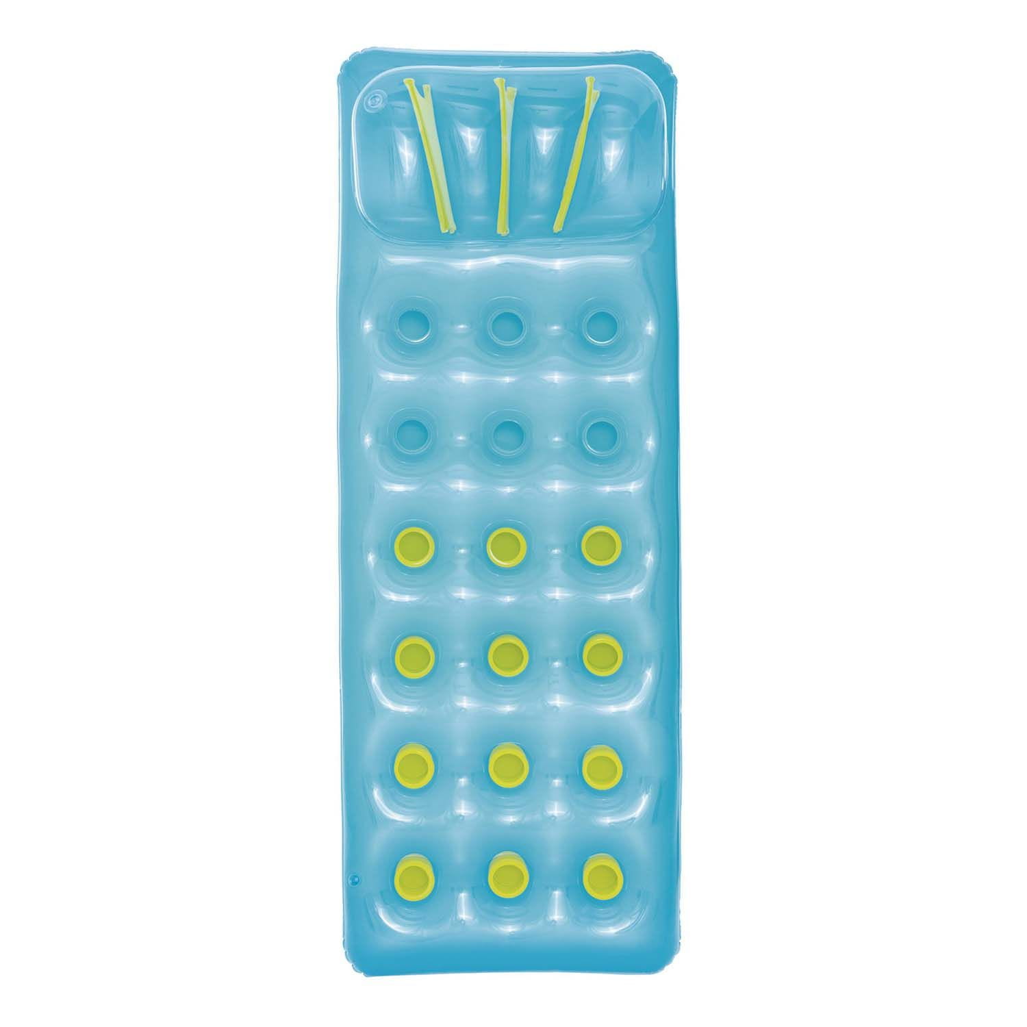 Dmuchany materac do pływania, Bestway, 188x71 cm, niebieski. Materac do pływania to jeden z najbardziej znanych artykułów plażowych. Dzięki technologi coil beam dedykowany model jest bardzo stabilny i wygodny. Wbudowana dmuchana poduszka zapewni Ci jeszcze większy komfort i pozwoli wygodnie ułożyć się podczas odpoczynku.