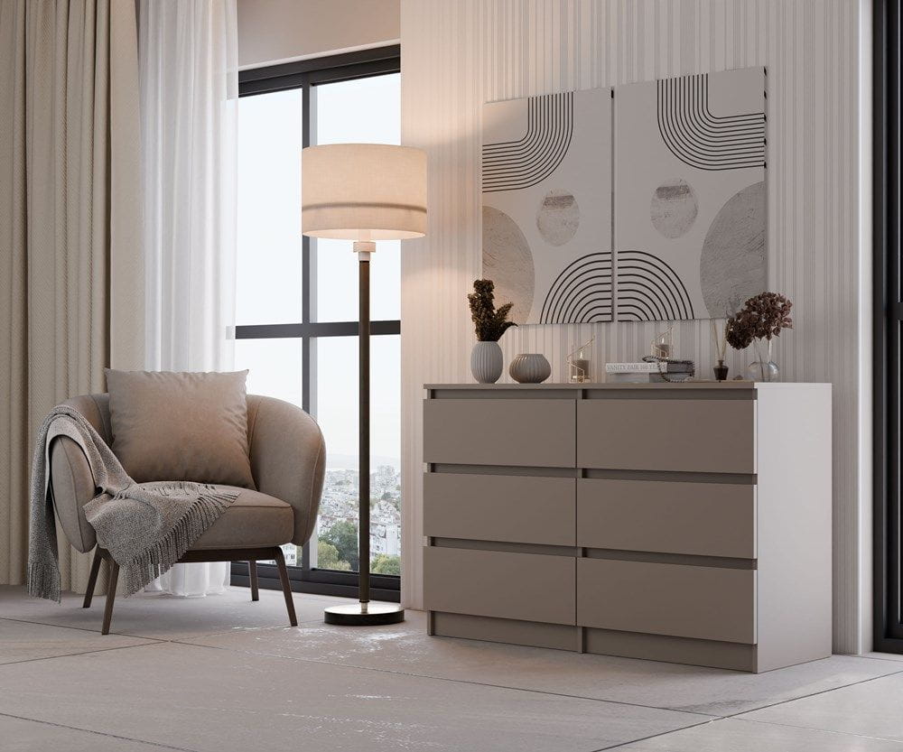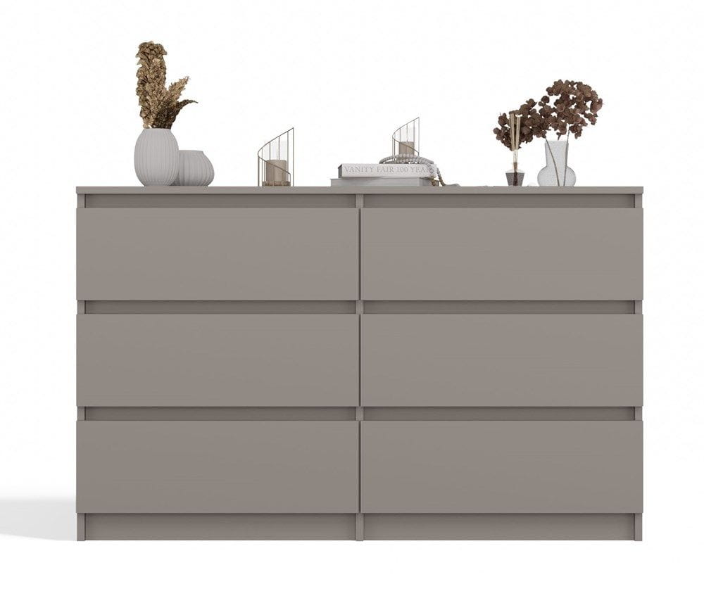Duża komoda, nowoczesna, Malwa, 120x30x75 cm, szary. Odkryj nowoczesną komodę z serii MALWA, która doskonale wpisuje się w najnowsze trendy wnętrzarskie. Ten funkcjonalny i pakowny mebel urządzi wnętrze Twojej sypialni, salonu, czy pokoju dziecka, dodając mu unikalnego charakteru.