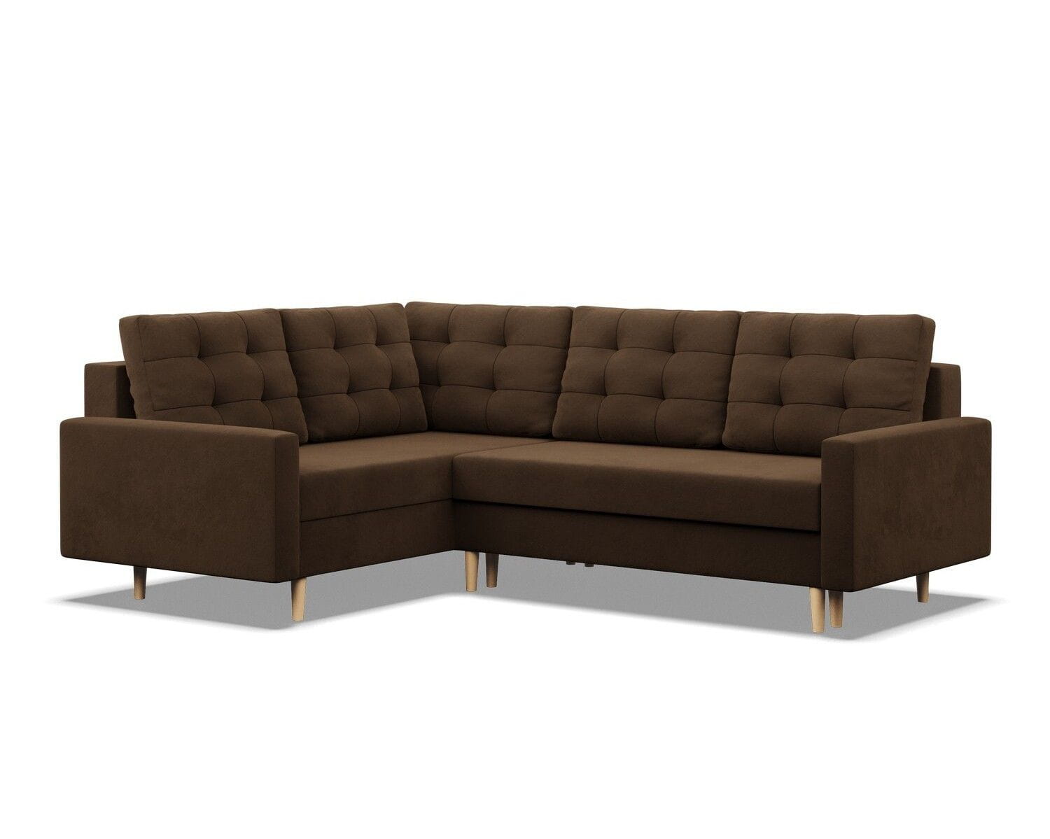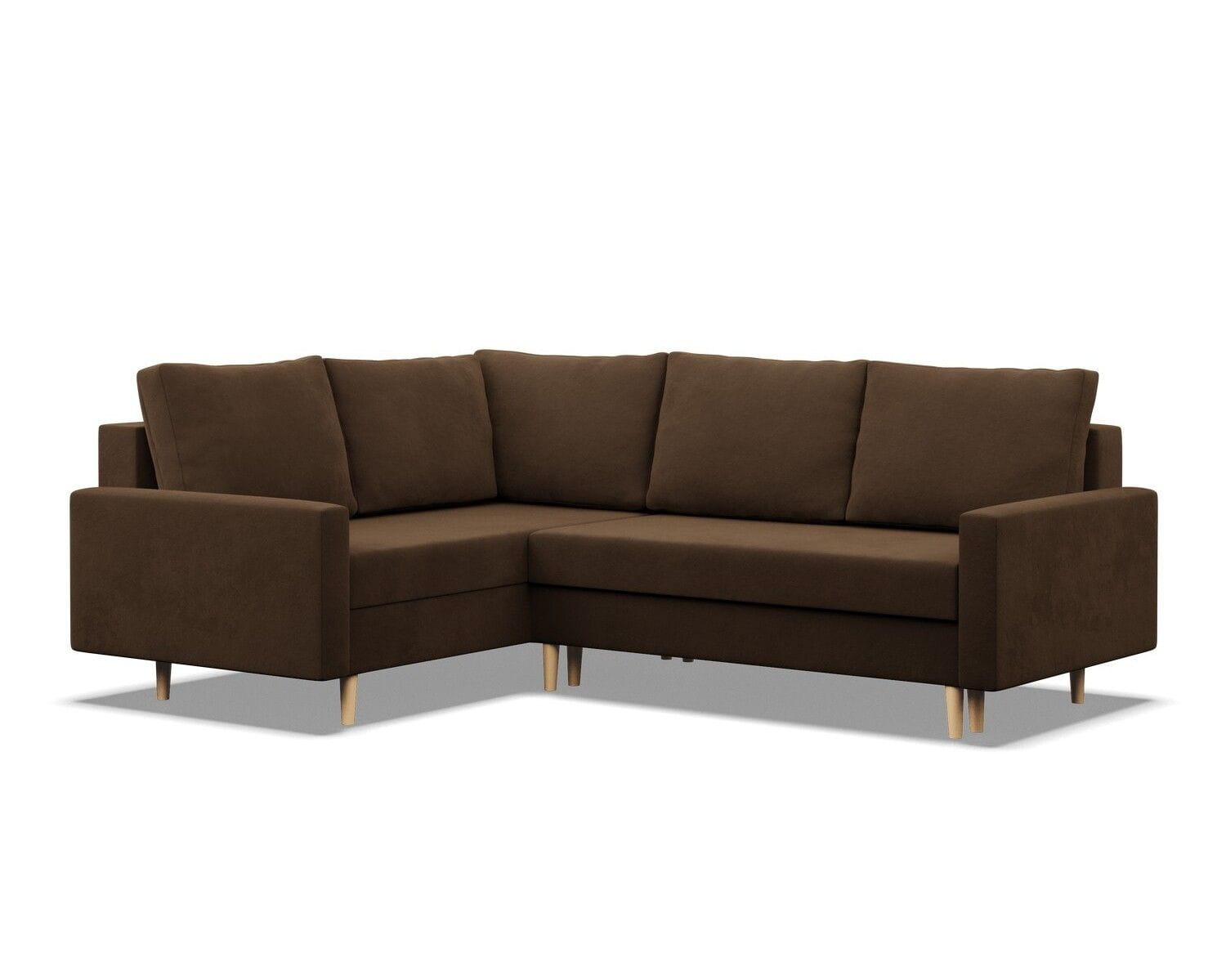 Duży narożnik, lewy, MILO Mikrofaza, 223x172x92 cm, brązowy. Szukasz minimalistycznego narożnika, który w łatwy i szybki sposób zmieni się w komfortowe miejsce do snu? Narożnik MILO to mebel, który zapewnia komfort użytkowania oraz stabilność konstrukcyjną. Dodatkowym atutem narożnika jest funkcja spania, dzięki czemu produkt sprawdzi się jako mebel do użytku codziennego lub jako wygodne łóżko dla gości.