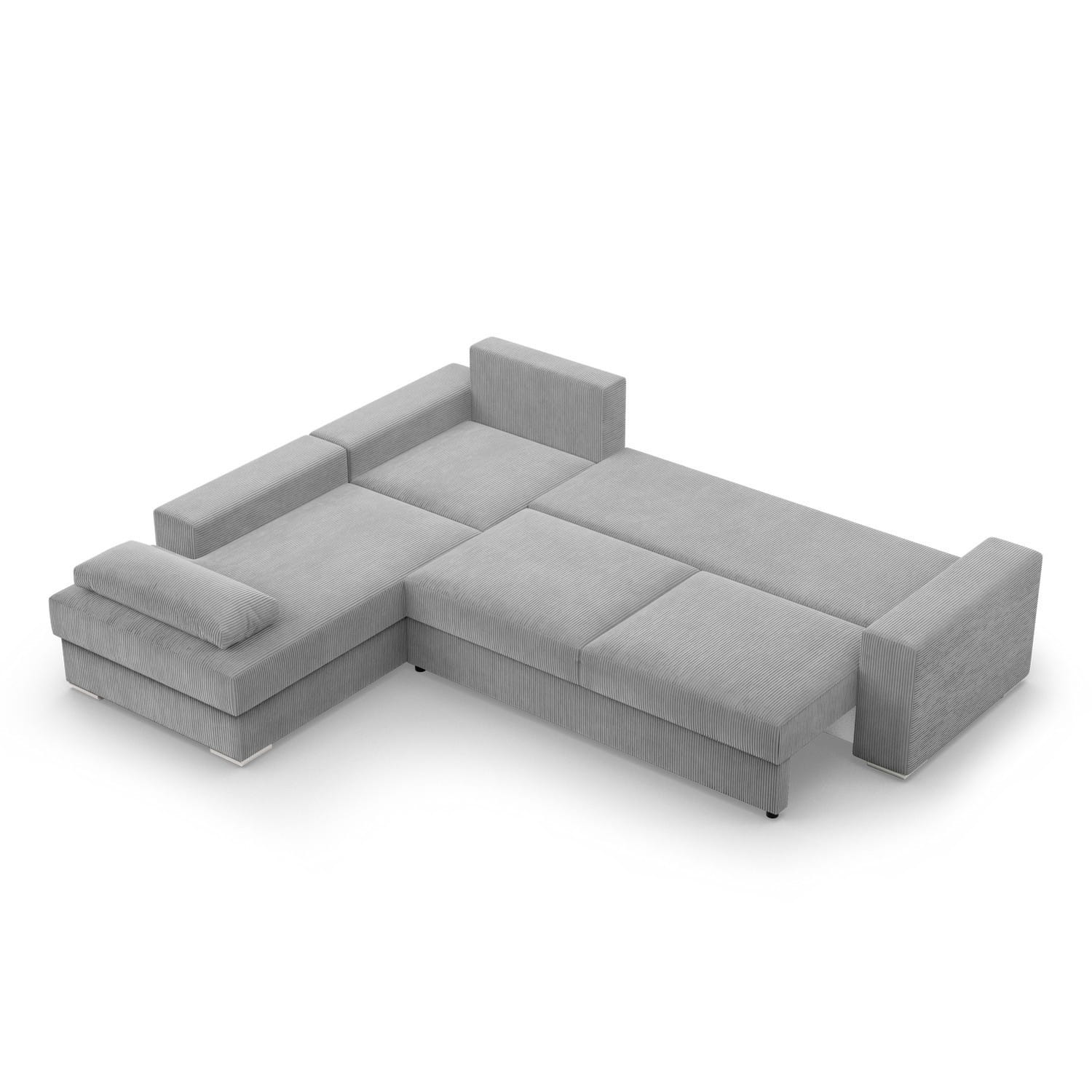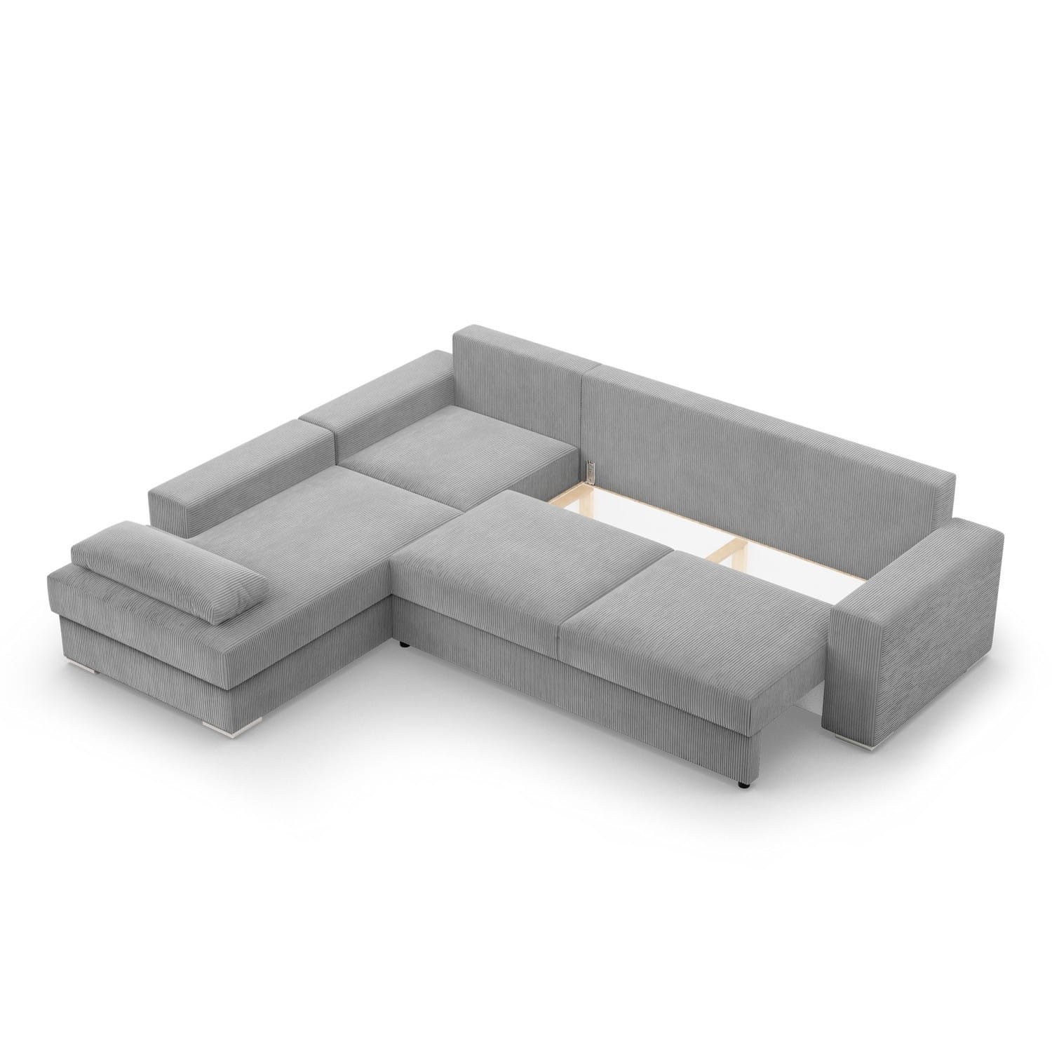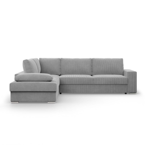 Duży narożnik, Momento, lewy, sztruks, 287x231x86 cm, jasny szary. Narożnik MOMENTO to mebel, który urzeka swoim wyglądem i funkcjonalnością. Wykonany z miękkiego i przyjemnego w dotyku sztruksu, w kształcie litery L, idealnie odnajdzie się w dużych przestrzeniach, stając się centralnym punktem każdej aranżacji.