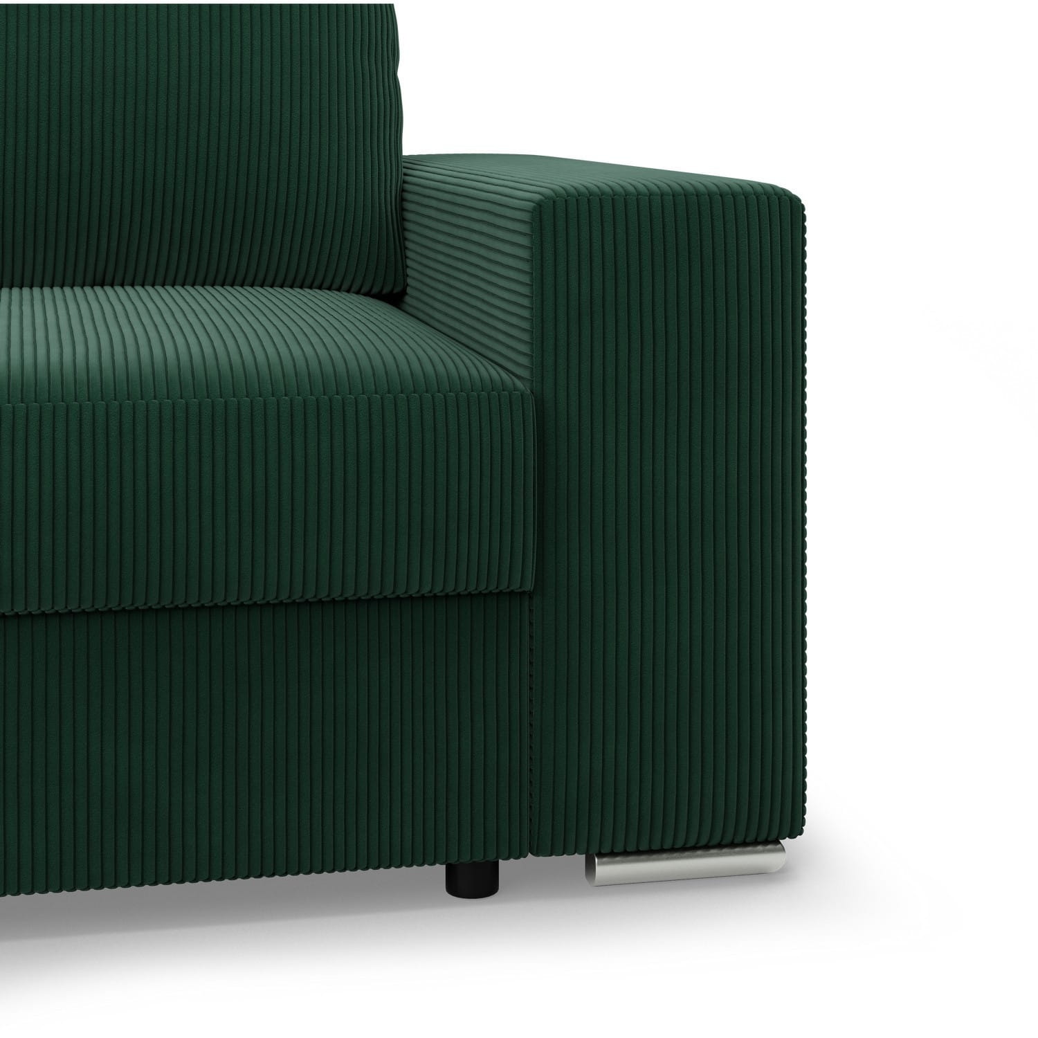 Duży narożnik, Momento, prawy, sztruks, 287x231x86 cm, butelkowa zieleń. Narożnik MOMENTO to mebel, który urzeka swoim wyglądem i funkcjonalnością. Wykonany z miękkiego i przyjemnego w dotyku sztruksu, w kształcie litery L, idealnie odnajdzie się w dużych przestrzeniach, stając się centralnym punktem każdej aranżacji.