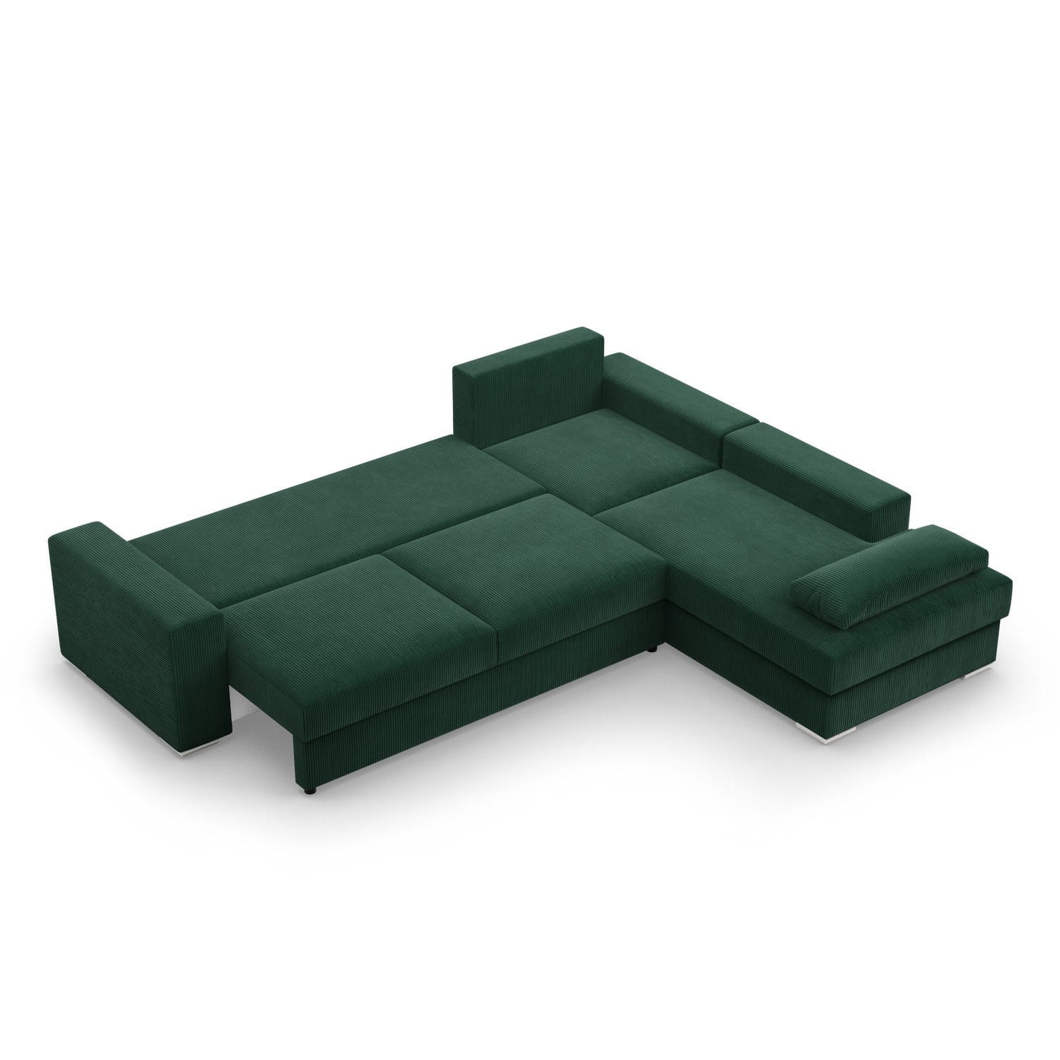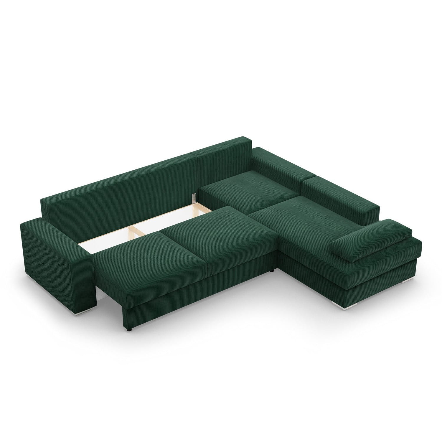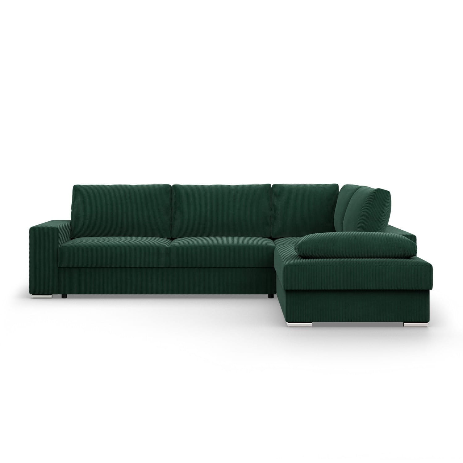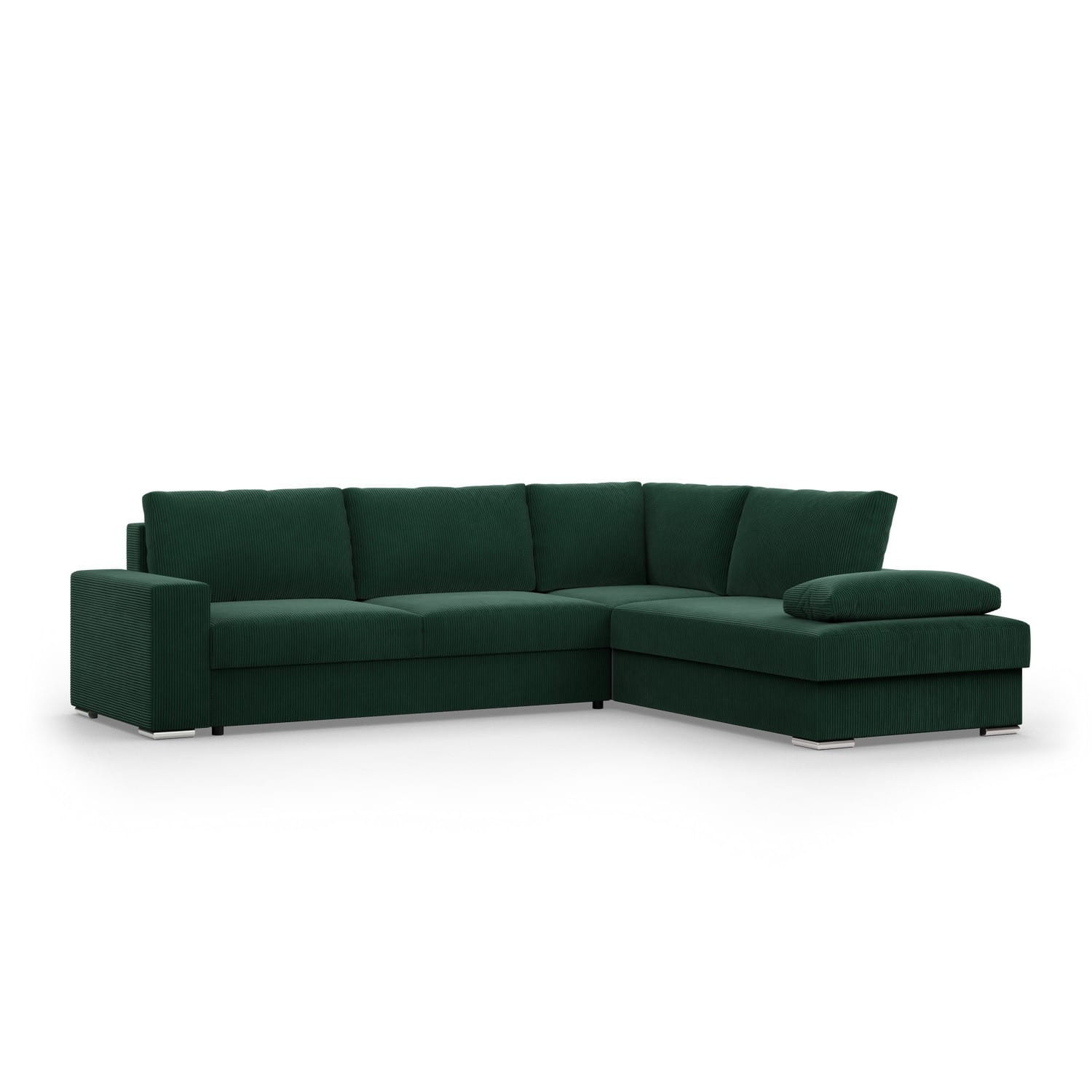 Duży narożnik, Momento, prawy, sztruks, 287x231x86 cm, butelkowa zieleń
