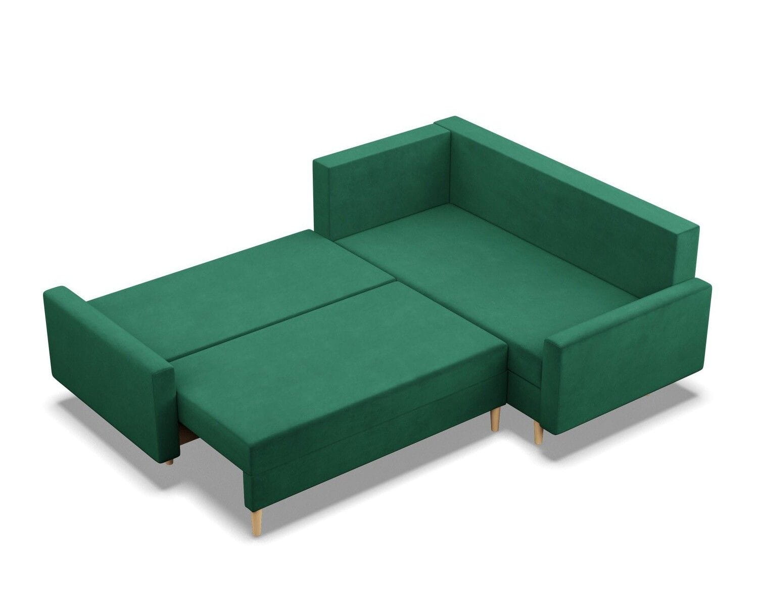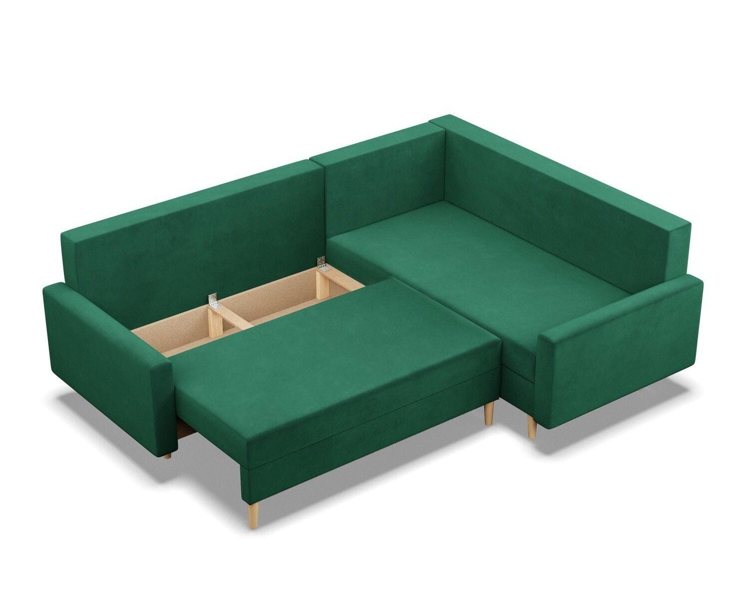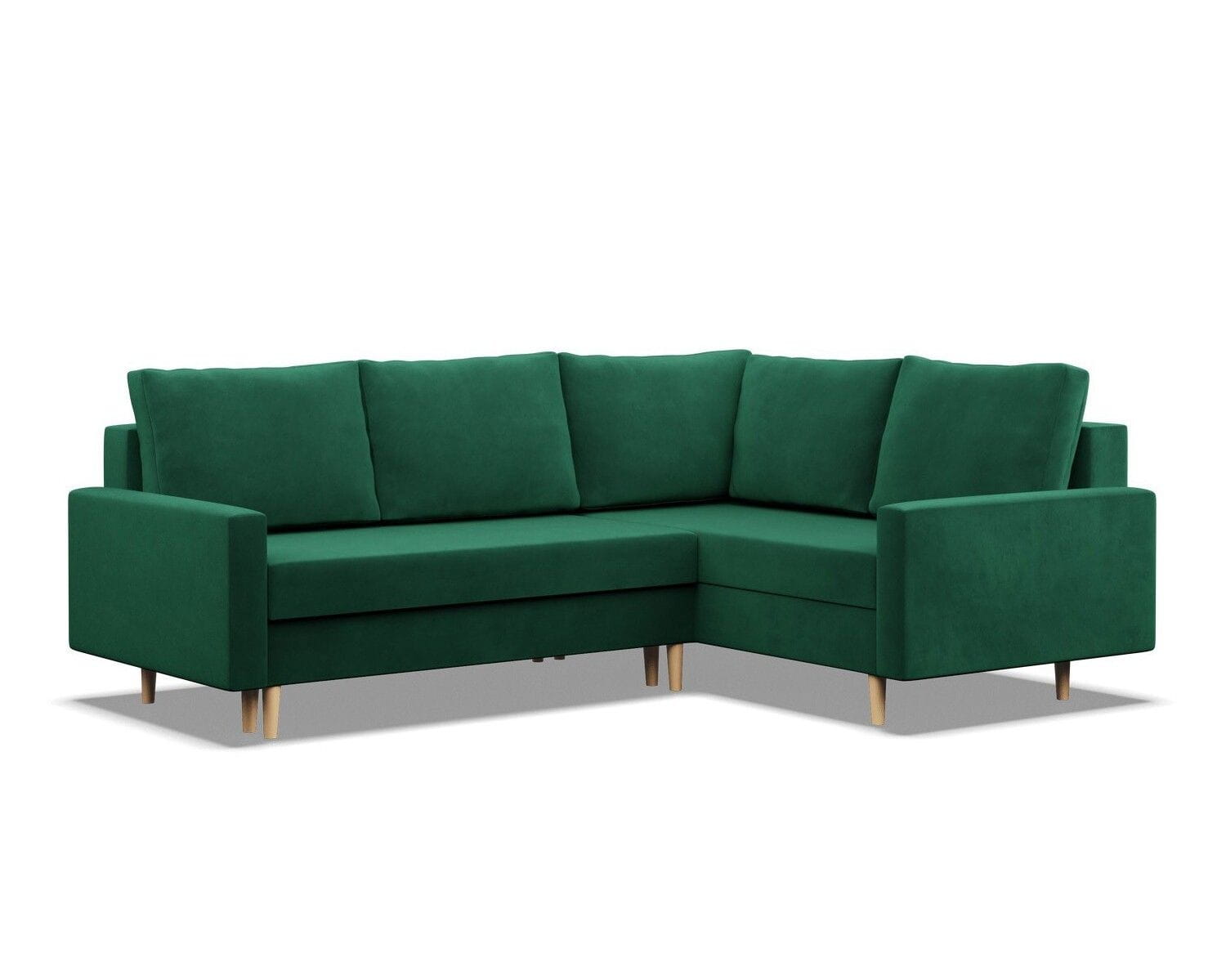 Duży narożnik, prawy, MILO, velvet, 223x172x92 cm, butelkowa zieleń. Szukasz minimalistycznego narożnika, który w łatwy i szybki sposób zmieni się w komfortowe miejsce do snu? Narożnik MILO to mebel, który zapewnia komfort użytkowania oraz stabilność konstrukcyjną. Dodatkowym atutem narożnika jest funkcja spania, dzięki czemu produkt sprawdzi się jako mebel do użytku codziennego lub jako wygodne łóżko dla gości.