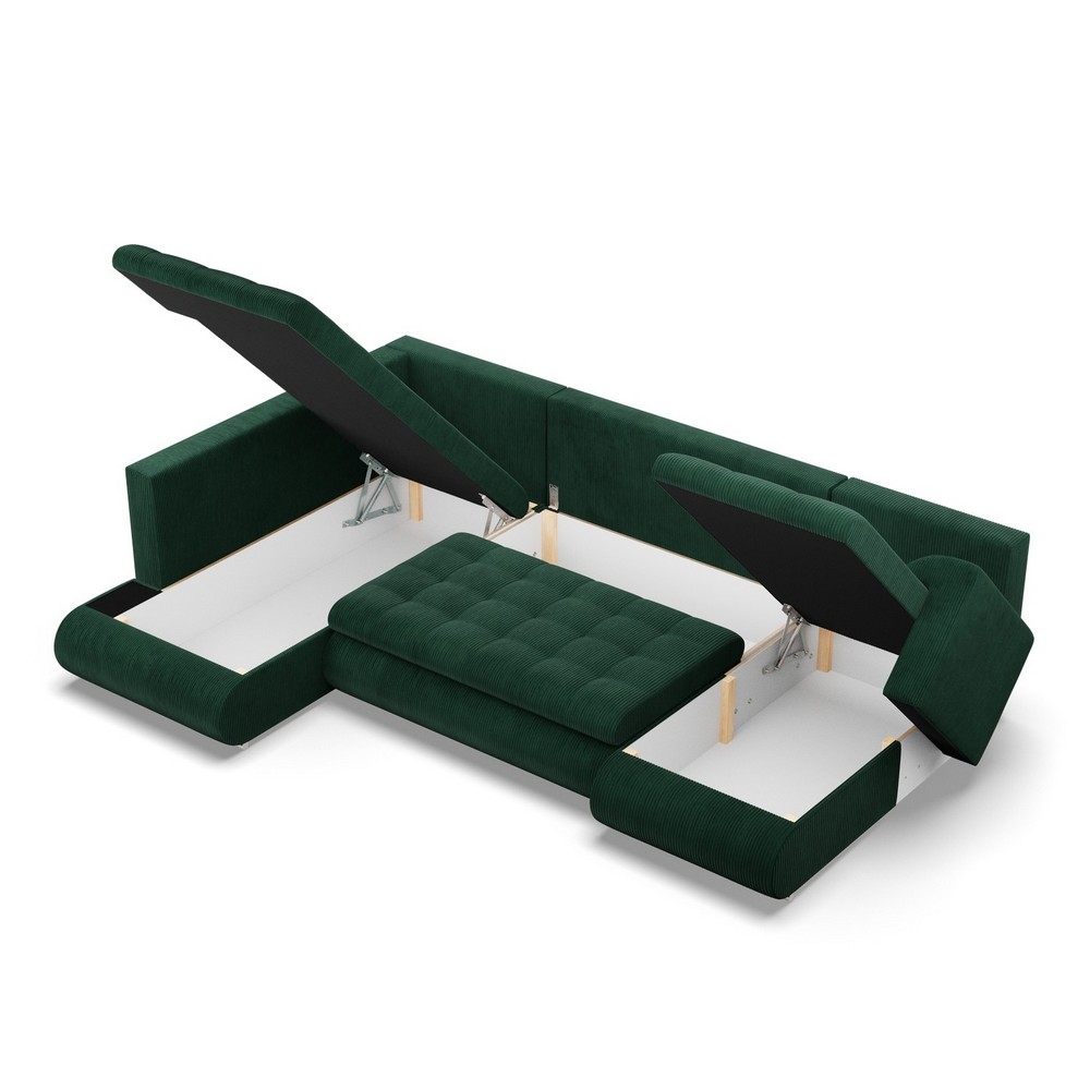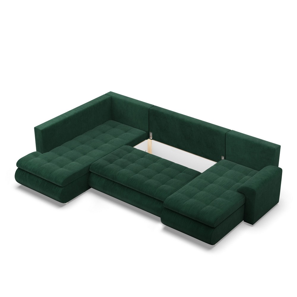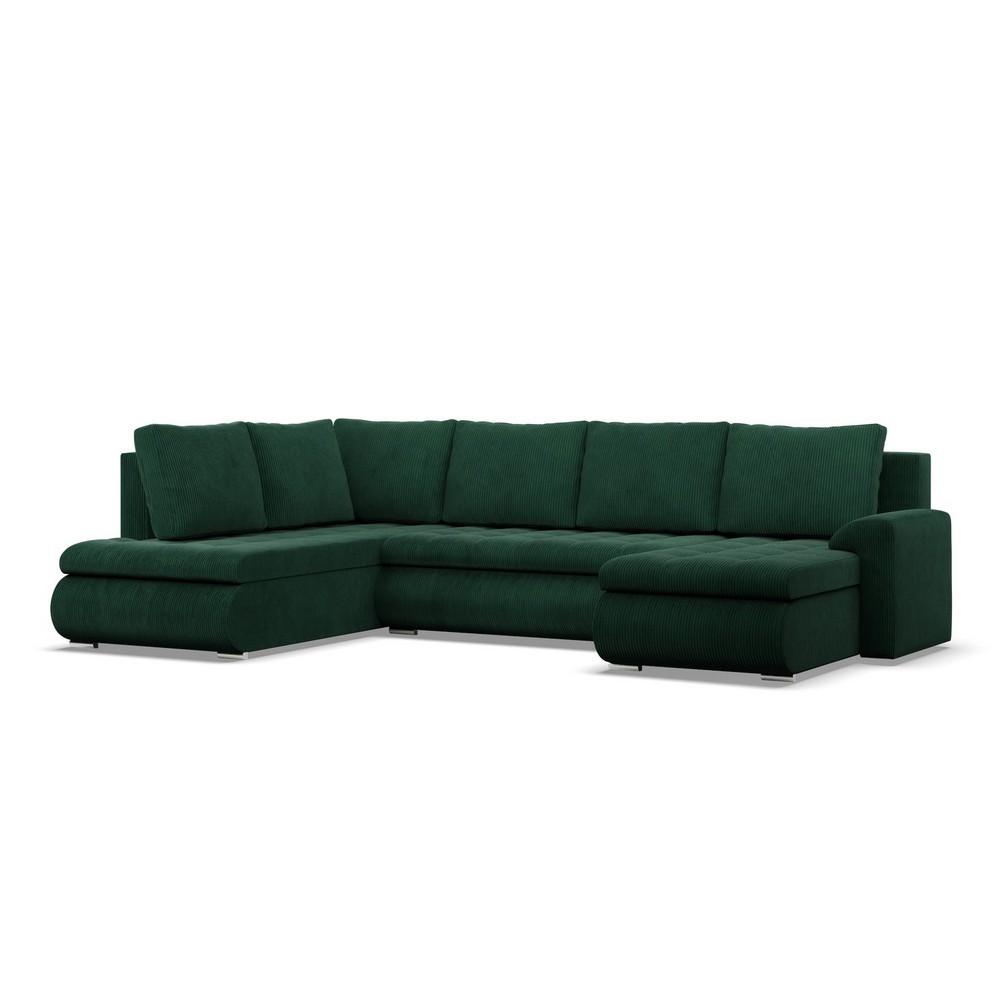 Duży narożnik U, lewostronny, BOSCO, sztruks, 300x200x89 cm, butelkowa zieleń