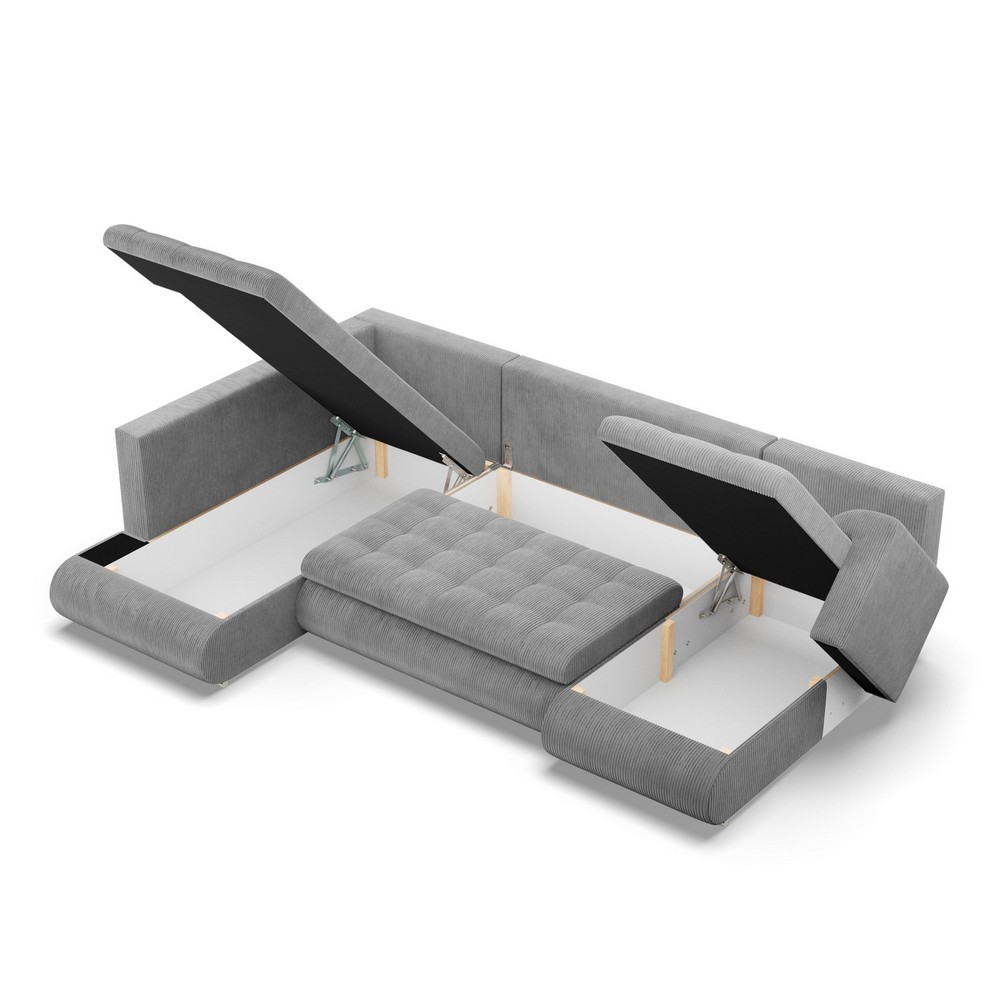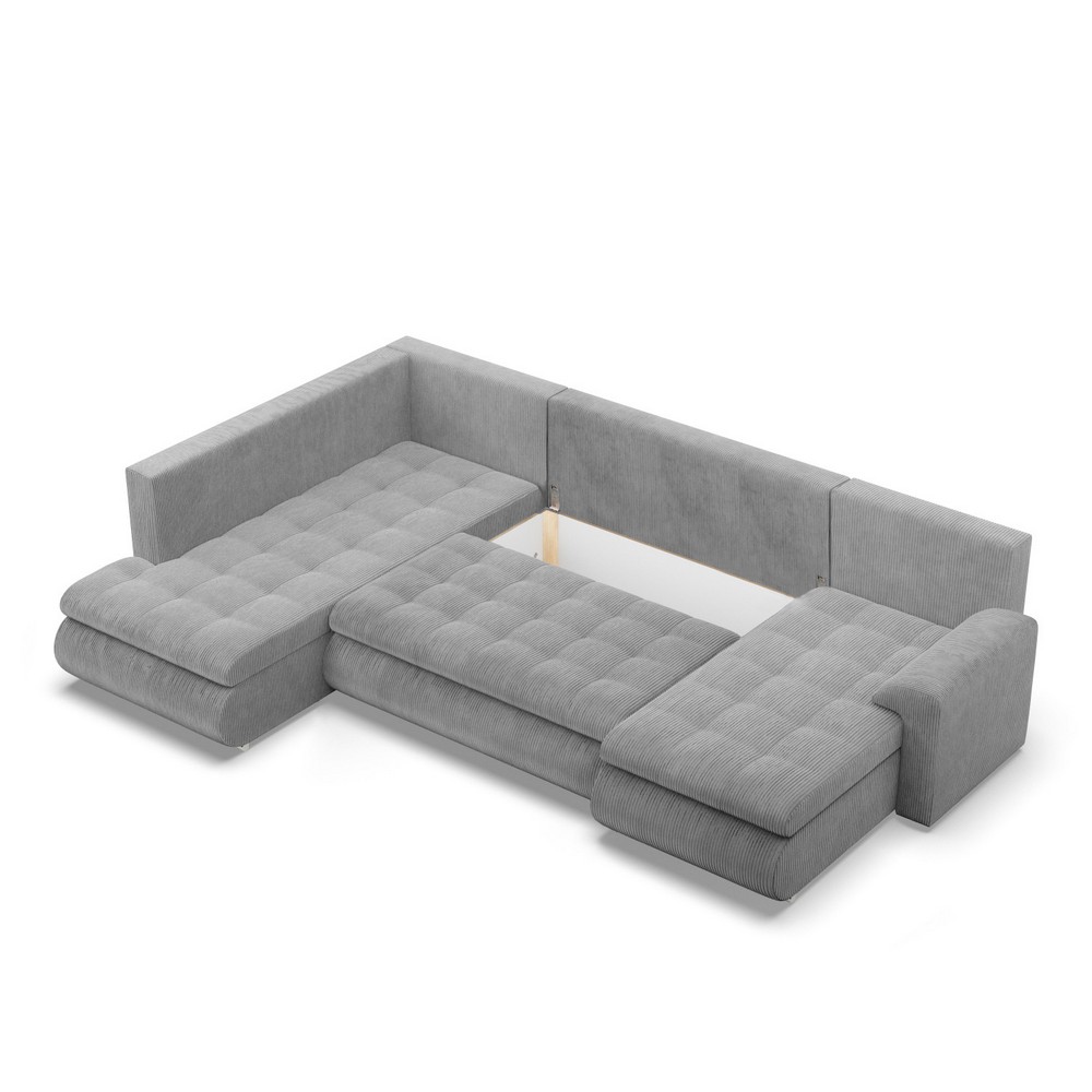 Duży narożnik U, lewostronny, BOSCO, sztruks, 300x200x89 cm, jasny szary