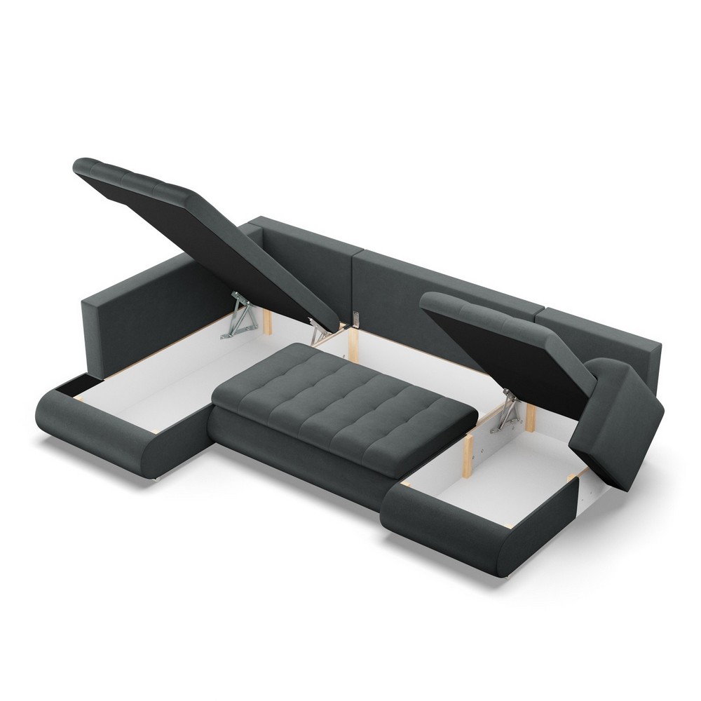 Duży narożnik U, lewostronny, BOSCO, velvet, 300x200x89 cm, ciemny szary