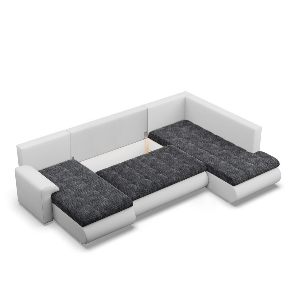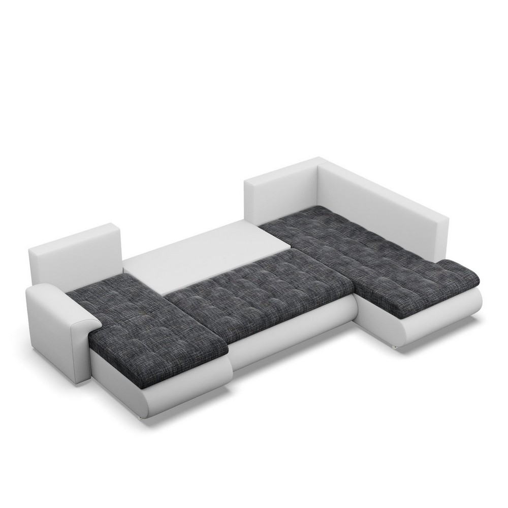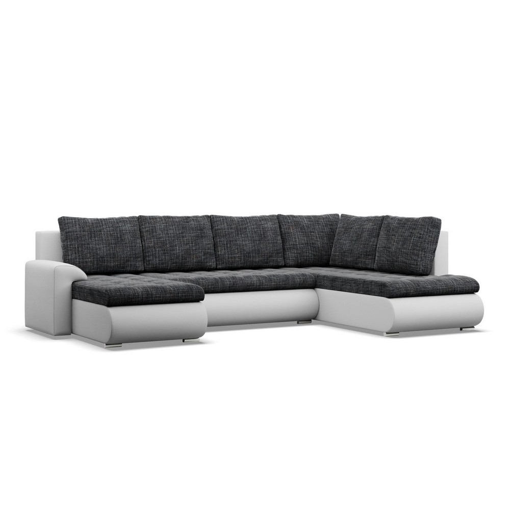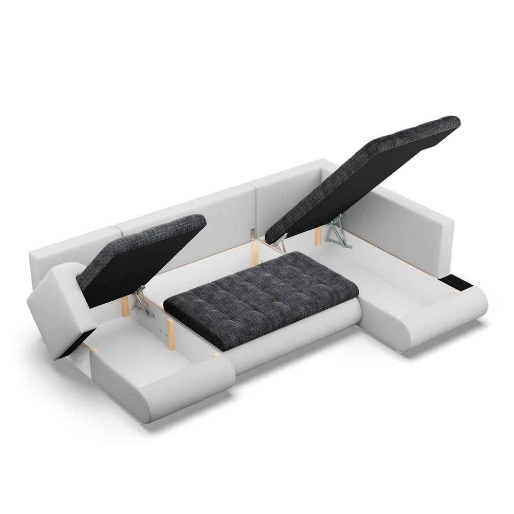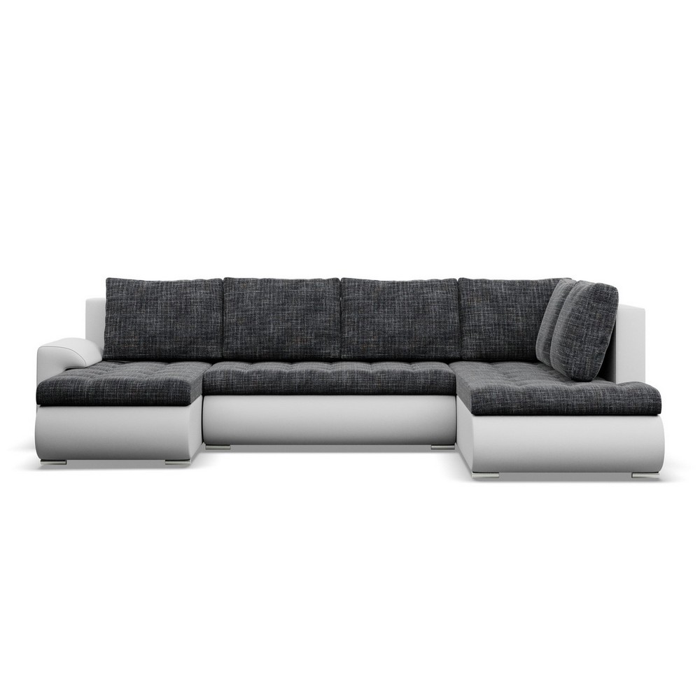 Duży narożnik U, prawostronny, BOSCO, ekoskóra, plecionka, 300x200x89 cm, biały, ciemny szary