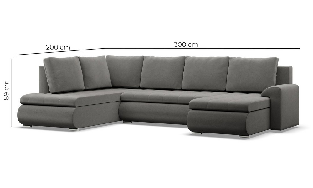 Duży narożnik U, prawostronny, BOSCO, sztruks, 300x200x89 cm, ciemny szary