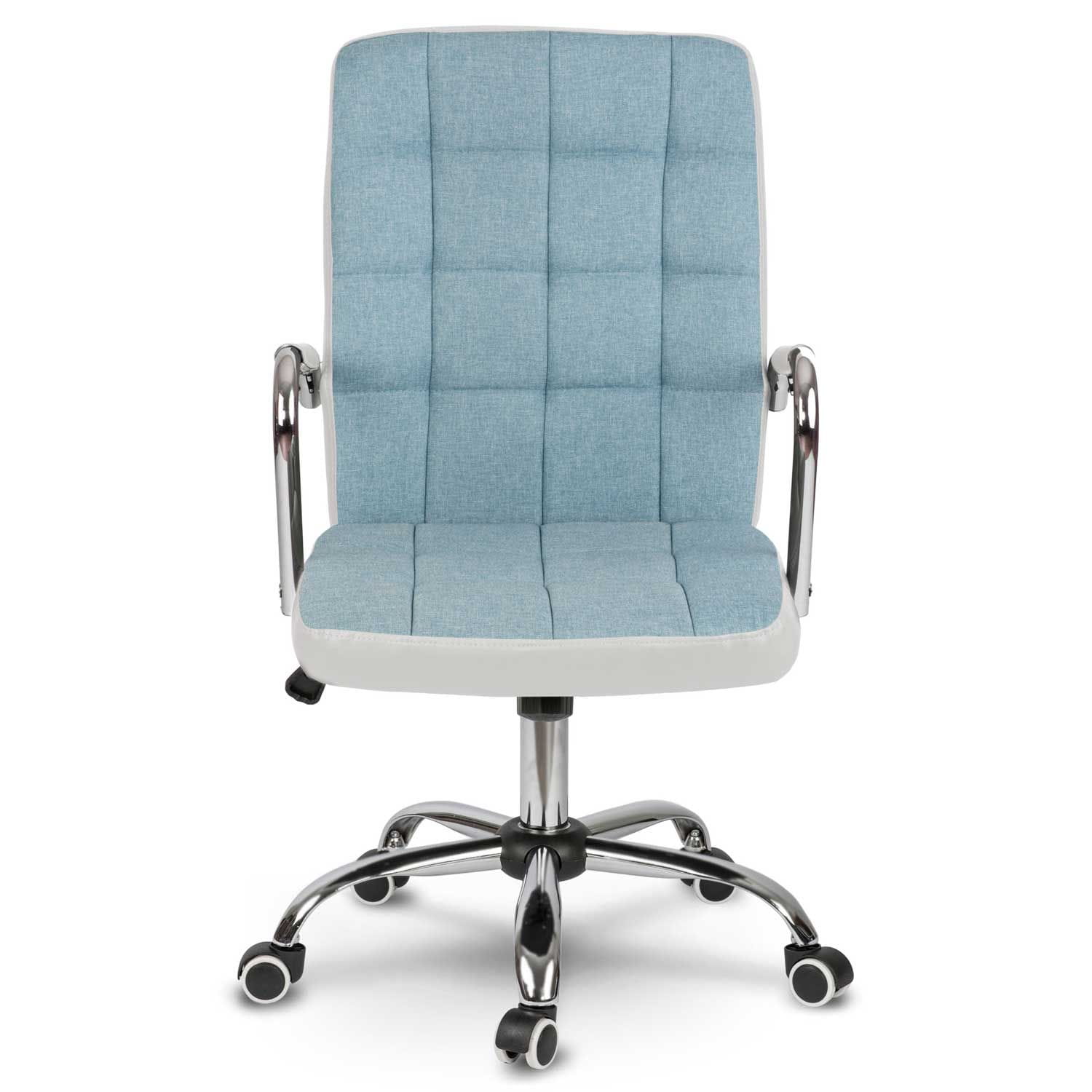 Fotel biurowy, materiałowy, krzesło, benton, niebieski, biały