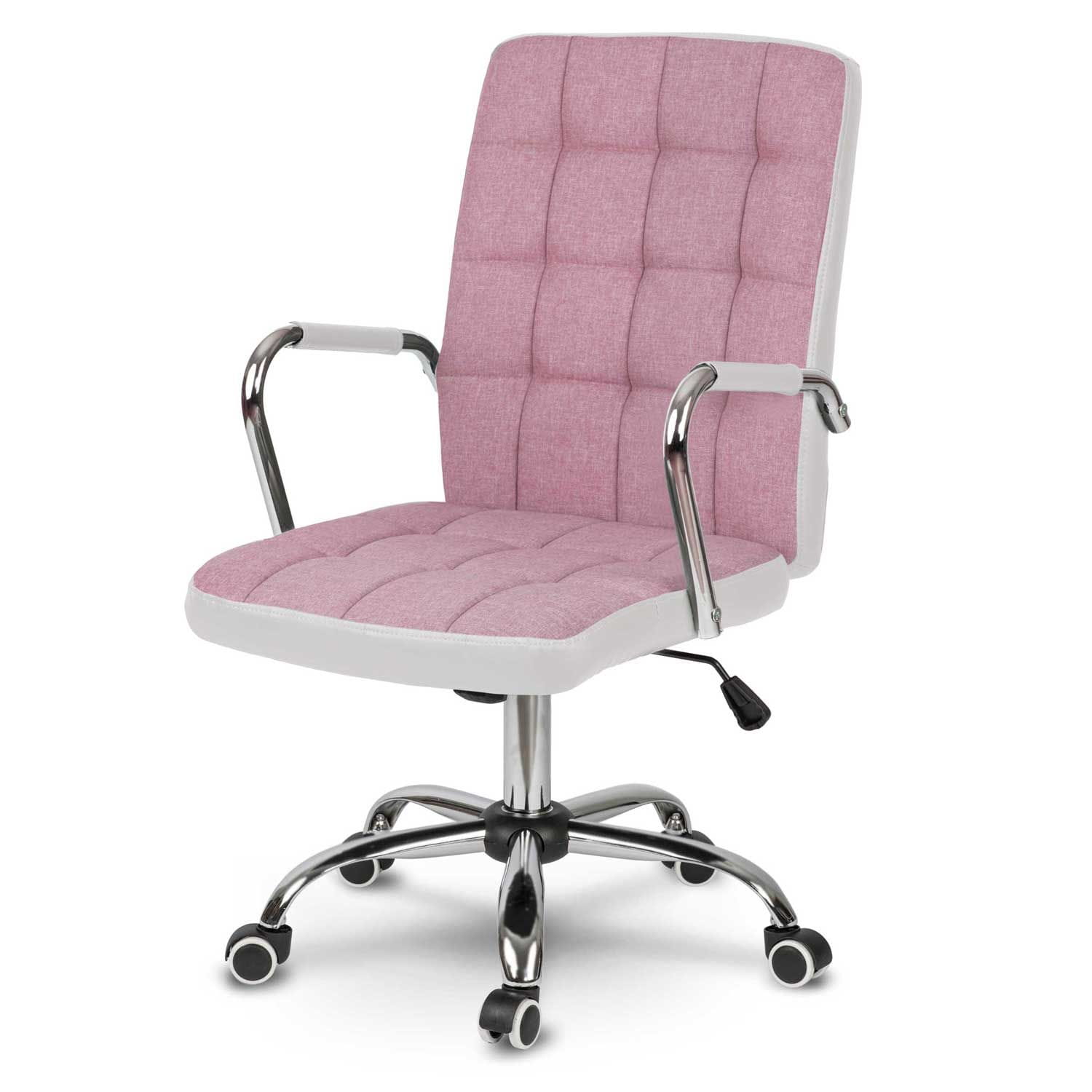 Fotel biurowy, materiałowy, krzesło, benton, różowy, biały