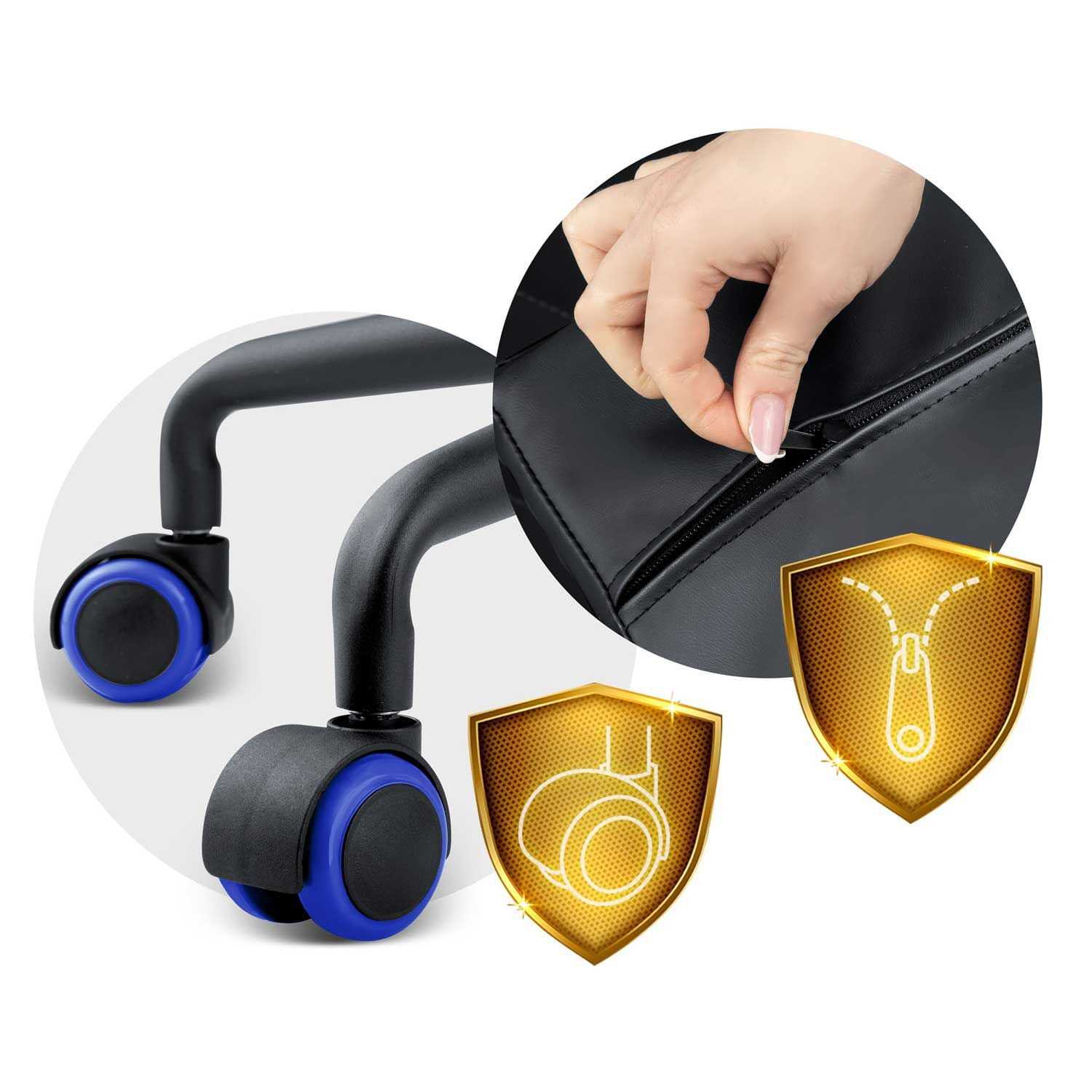 - metalowa podstawa z gumowanymi kółkami, które nie rysują podłogi