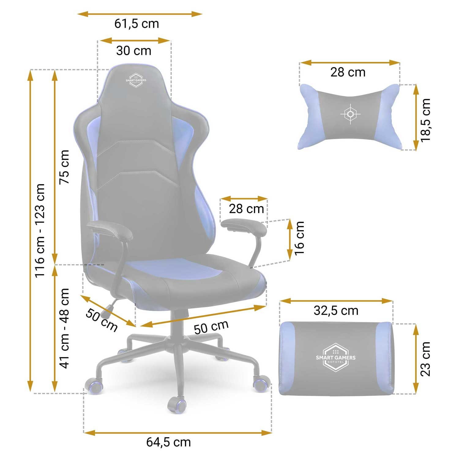 - głębokość siedziska: 50 cm