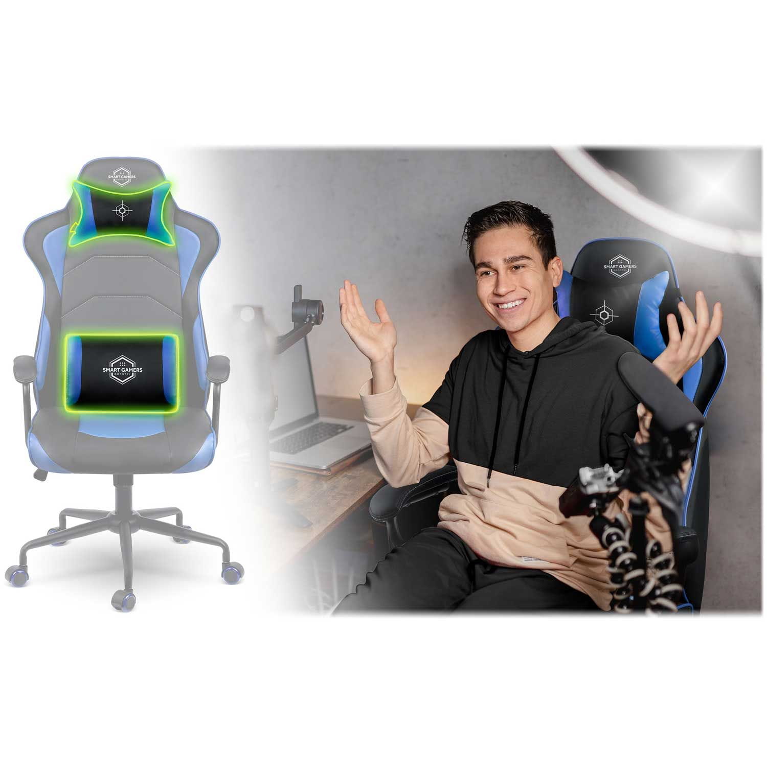 Fotel gamingowy, biurowy, obrotowy, Sofotel, Yasuo, niebieski