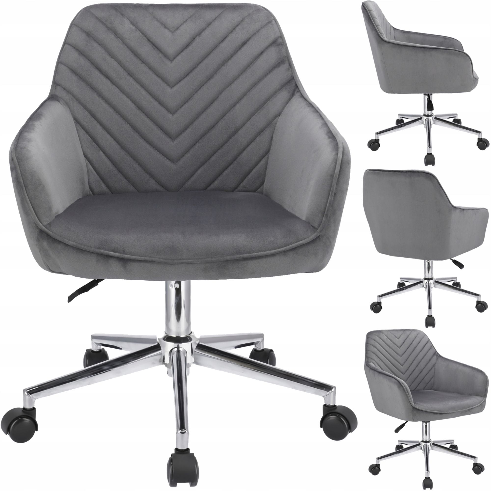 Fotel obrotowy, krzesło konferencyjne, welur, szary na srebrnej stopie
