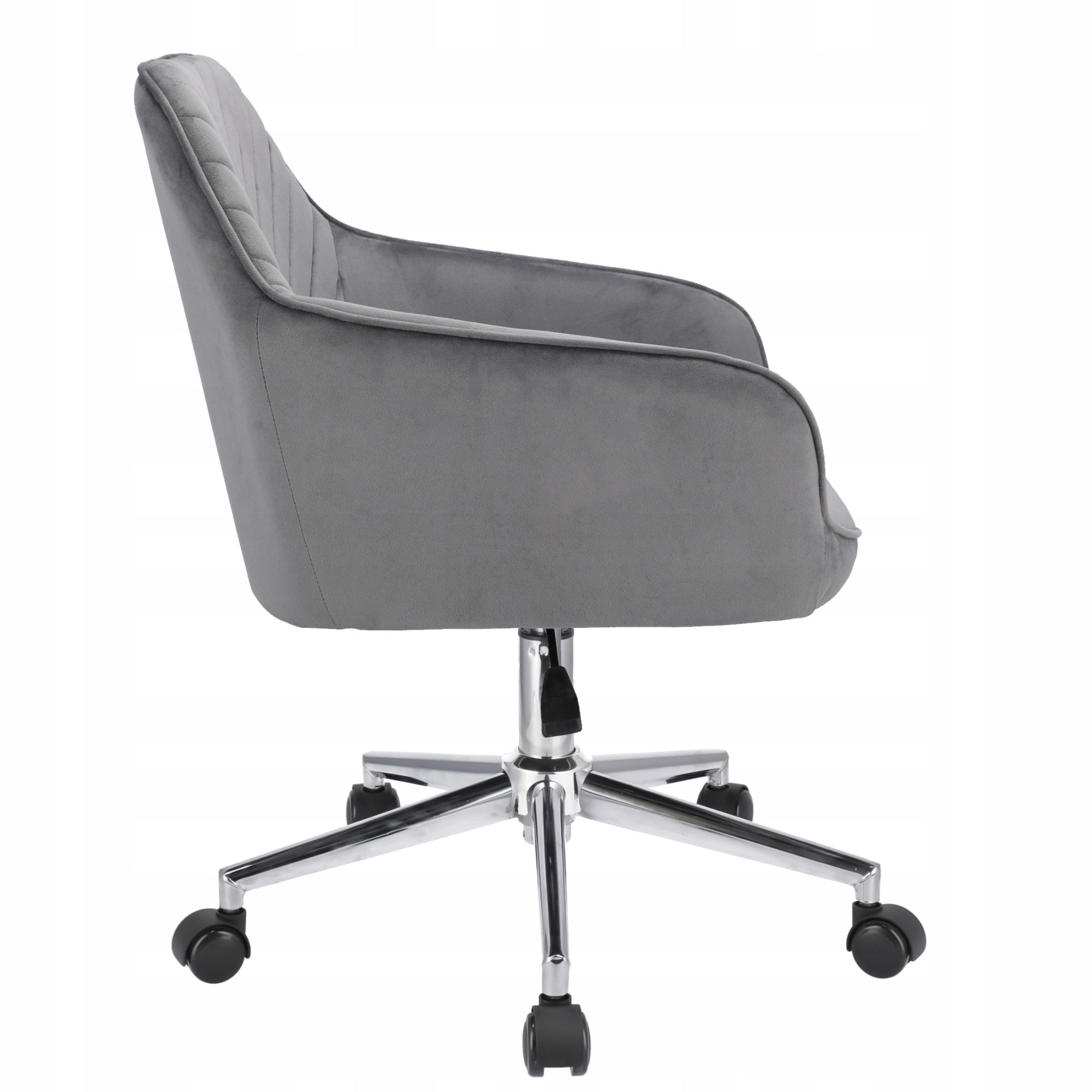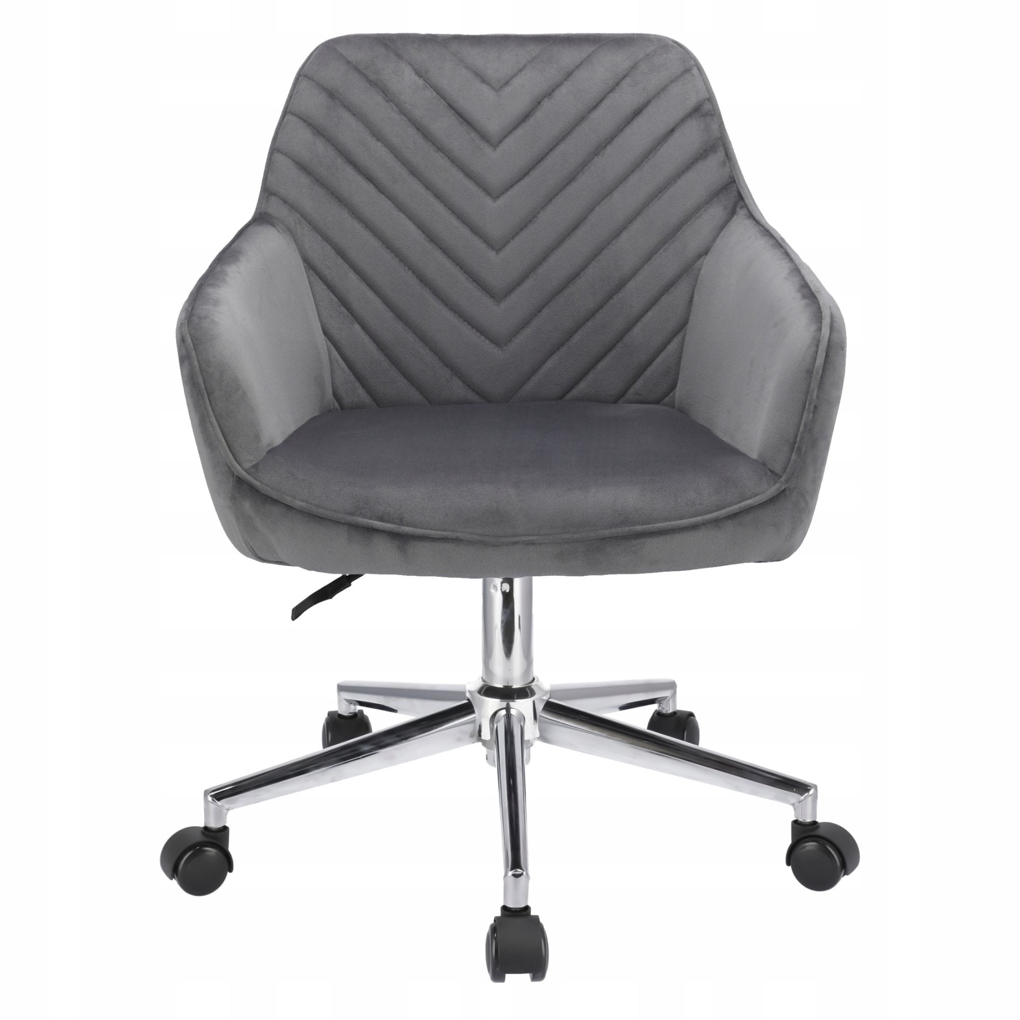 Elegancki fotel biurowy obity miękkim welurem, łączący nowoczesny design z wyjątkowym komfortem. Regulacja wysokości i 360-stopniowy obrót zapewniają wygodę podczas pracy. Solidna podstawa na pięciu kółkach gwarantuje stabilność i mobilność. Idealny do biur i domowych gabinetów, dodający przestrzeni stylu i klasy.