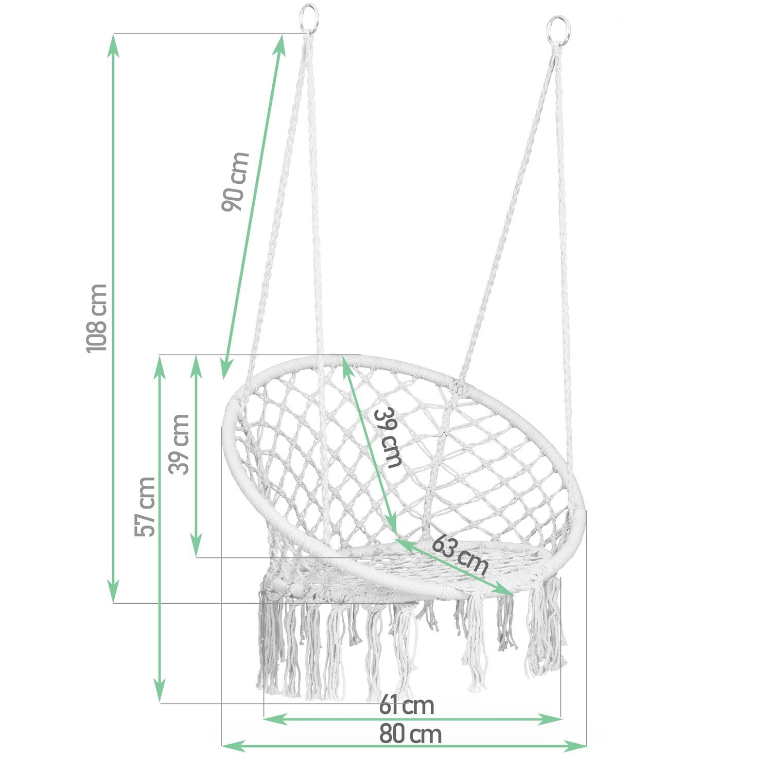 Fotel ogrodowy, wiszący, huśtawka, Boho, 80x80x108 cm. Wygodny fotel wiszący w nowoczesnym i będącym na czasie stylu boho. Solidny i trwały, wiszący fotel to świetna propozycja dla osób, które cenią sobie relaks na świeżym powietrzu. Wiszący kosz łączy w sobie nie tylko wygodę i trwałość ale dodatkowo jest wykonany według najnowszych trendów. Taki hamak możesz powiesić zarówno w domu w roli wiszącego fotela, jak i w ogrodzie jako huśtawkę ogrodową.