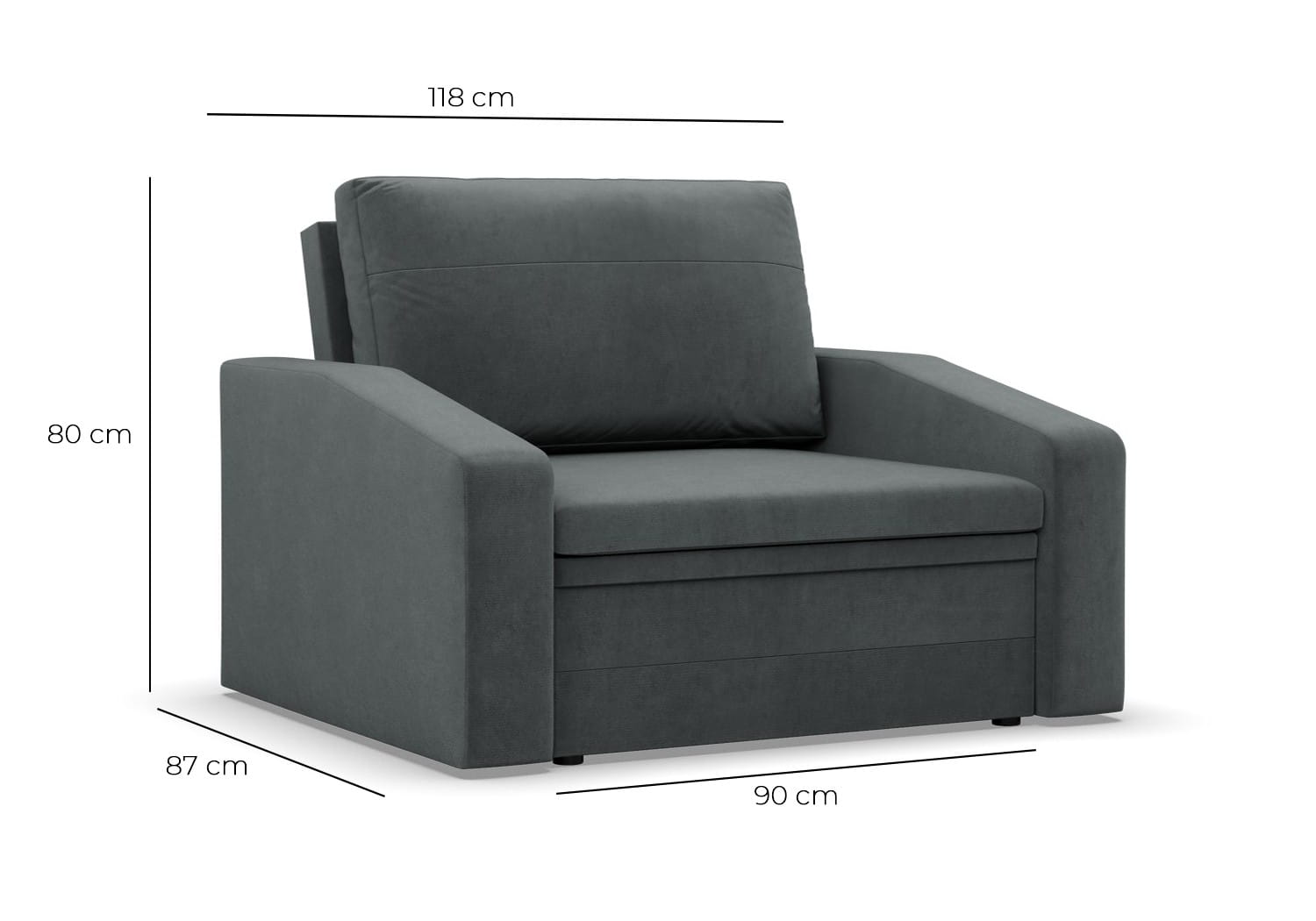 - Głębokość fotela: 87 cm