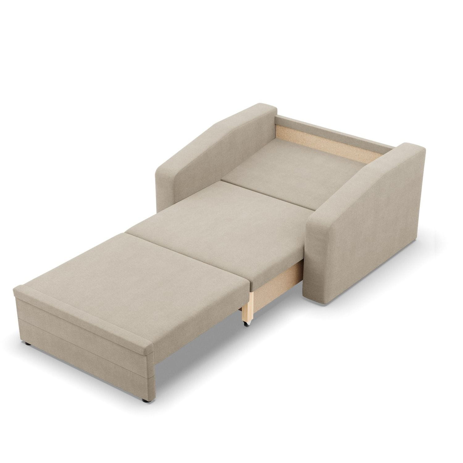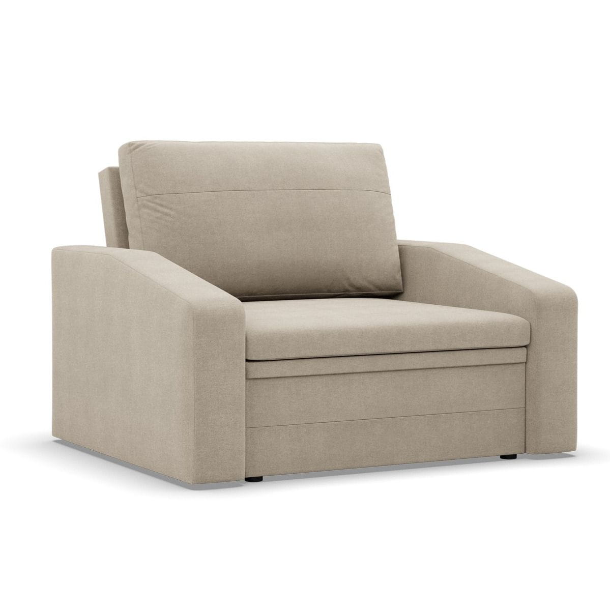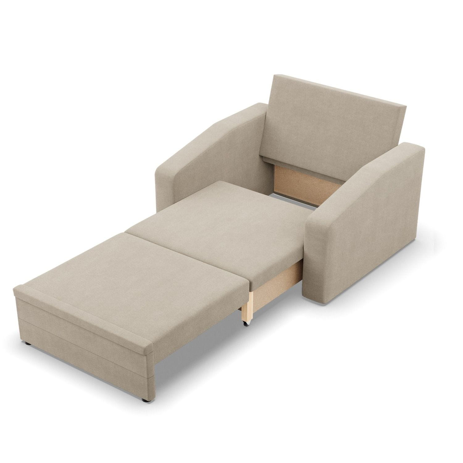 Fotel rozkładany, Punto, plecionka, 118x87x90 cm, beżowy. Fotel PUNTO to minimalistyczny, a zarazem bardzo wygodny mebel, który sprawdzi się w małometrażowych pomieszczeniach. Fotel wykończony został miękką i przyjemną tkaniną. Dodatkowym atutem mebla są wąskie podłokietniki, które nie zabierają zbyt dużej ilości miejsca.
