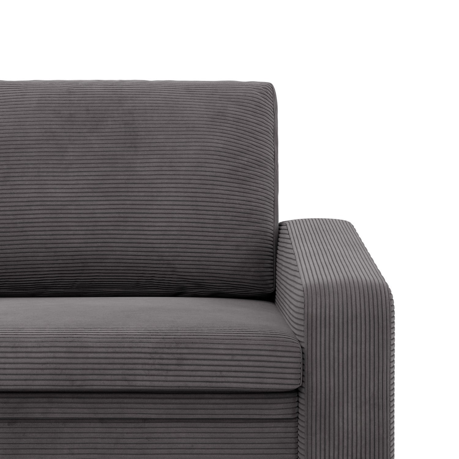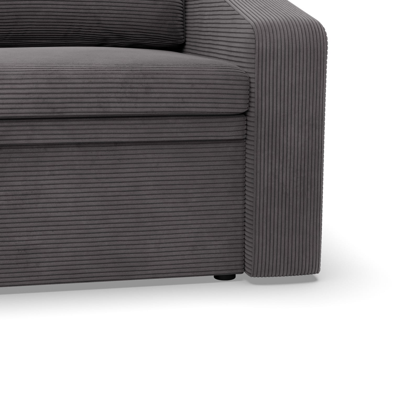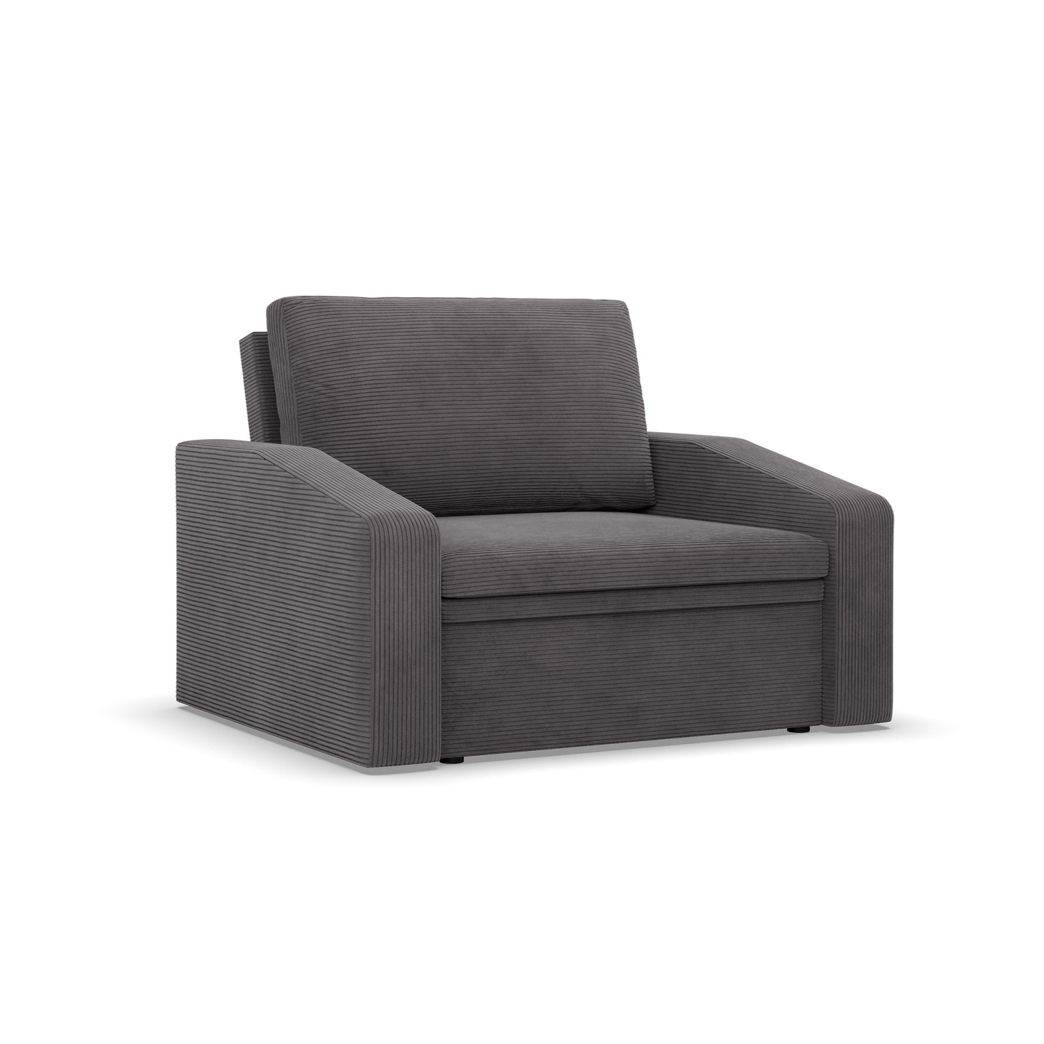 Fotel rozkładany, Punto, sztruks, 118x87x90 cm, ciemny szary. Fotel PUNTO to minimalistyczny, a zarazem bardzo wygodny mebel, który sprawdzi się w małometrażowych pomieszczeniach. Fotel wykończony został miękką i przyjemną tkaniną. Dodatkowym atutem mebla są wąskie podłokietniki, które nie zabierają zbyt dużej ilości miejsca.