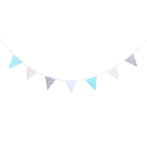 Girlanda, wykonana z delikatnych, starannie dobranej kolorystyki materiałów, emanuje subtelnym urokiem i elegancją. Składa się z różnorodnych elementów jak sznurek o długości 245cm i proporczyka o wysokości 18cm. Wspólnie tworząc piękny zestaw, który doskonale komponuje się z różnymi stylami wnętrz.