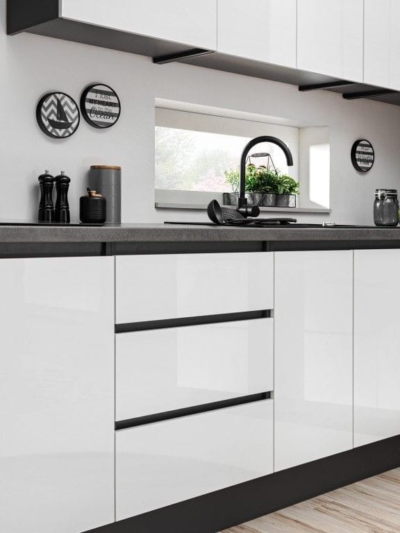 Gotowy zestaw mebli kuchennych, Dalia, biały, grafit, połysk