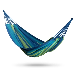 Hamak ogrodowy, 2-osobowy, Malaga Double, 200x160 cm, niebiesko-zielony. Nie masz ogrodu? Dedykowany hamak możesz z powodzeniem wykorzystać na tarasie, balkonie a nawet w mieszkaniu! Jest lekki, więc zabierzesz go ze sobą na piknik, wycieczkę lub plażę - gdzie tylko zapragniesz!