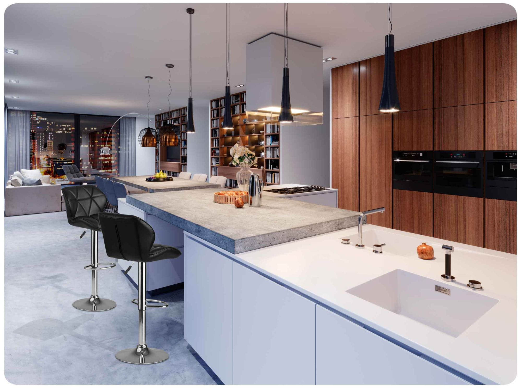 Hoker barowy z oparciem, Castel, czarny, chrom. Elegancki hoker marki Sofotel o nowoczesnym designie, pasującym do wnętrz o różnej aranżacji. Dzięki temu idealnie sprawdzi się w domowej kuchni, ale także w nowoczesnym, komercyjnym wnętrzu – klubie, pubie, kawiarni czy poczekalni. Dedykowany wybór jest więc odpowiednim wyborem dla osób ceniących sobie modne wzornictwo.