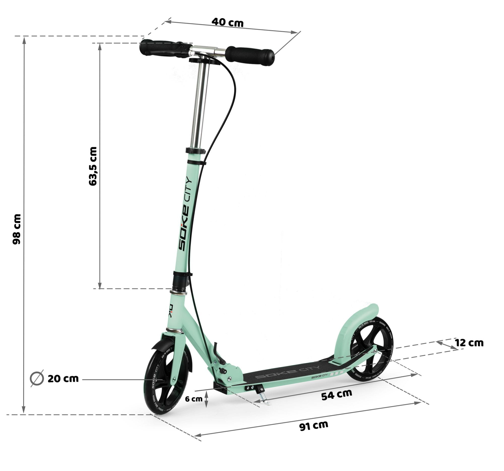 Hulajnoga dwukołowa, Soke City, zielona. Idealny środek transportu do pracy, szkoły i na uczelnie. Możliwość dostosowania hulajnogi do własnych preferencji.